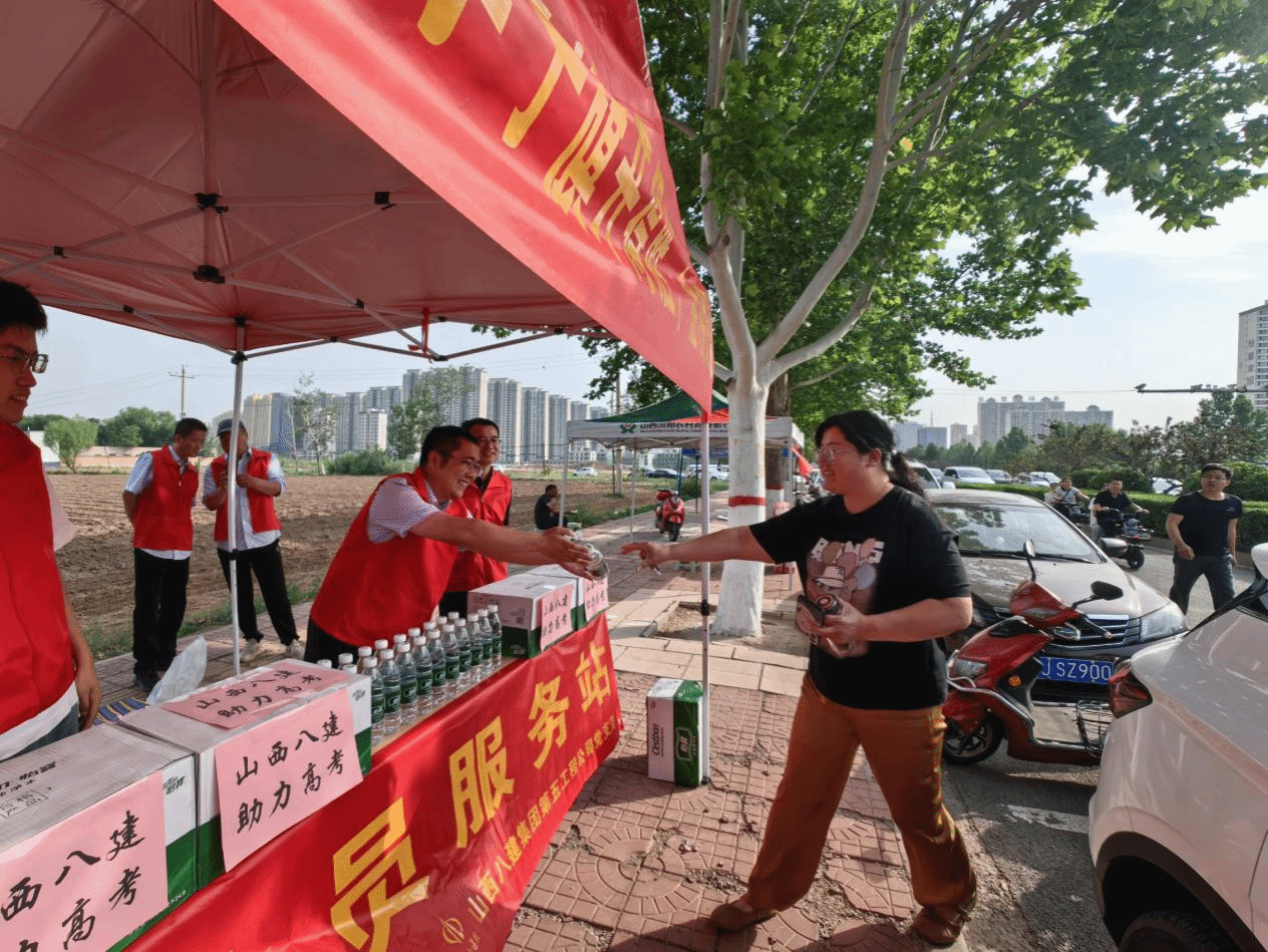 四建集團在清徐縣縣城二中和朔州師范高等專科學??键c外設立志愿服務站,為考生及家長提供文具、防暑降溫物資及休息區(qū)。志愿者們在現(xiàn)場分發(fā)物資、疏導人群、維護秩序,為高考學子營造良好的考試環(huán)境。