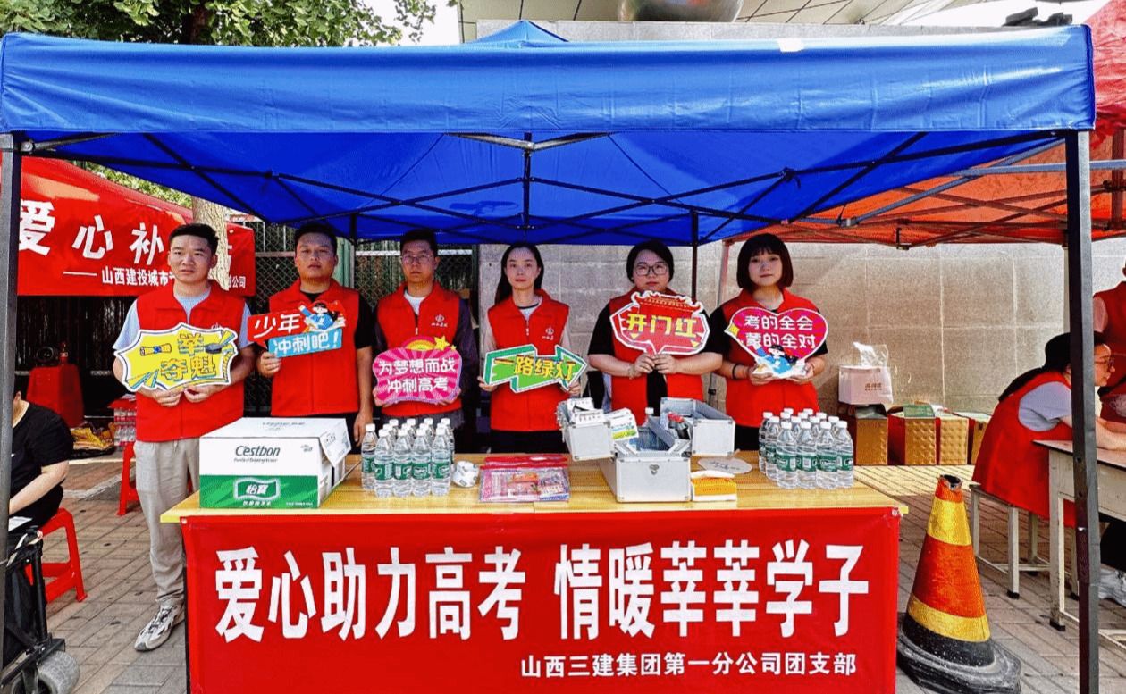 三建集團組織志愿者在考點設立愛心服務站,精心準備考試文具和防暑應急包,同時搭建遮陽休息區(qū)。志愿者們不僅為考生提供物資支持,還組建應急送考車隊,為有需求的考生提供安全、便捷的接送考服務。