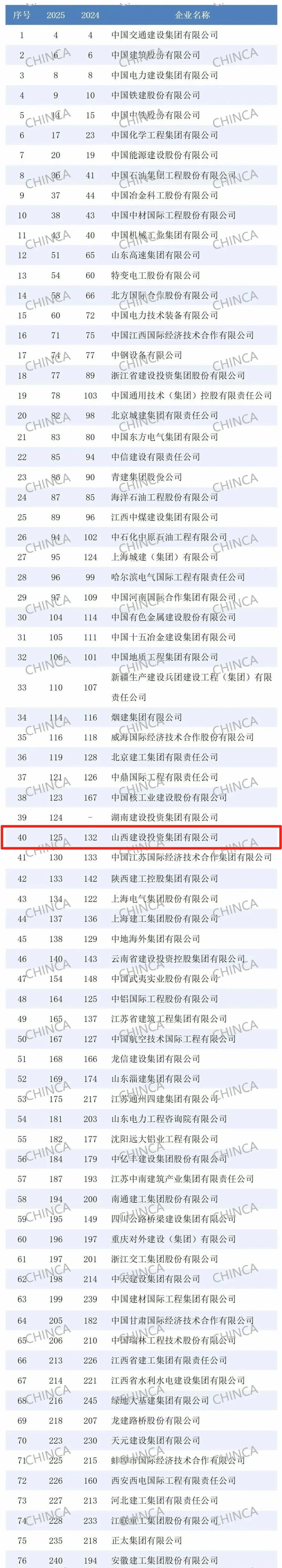 8月21日,美國《工程新聞記錄》(ENR)2025年度“全球承包商250強”和“國際承包商250強”榜單公布,山西建投分別位列第13位和第125位,排名較去年提升1位和7位,保持穩(wěn)步上升態(tài)勢。