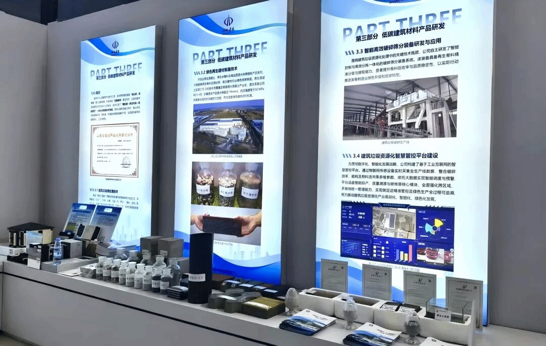 低碳建筑材料產(chǎn)品研發(fā)展區(qū),展示了低碳建材領(lǐng)域的煤基固廢高值化利用、綠色再生建材。