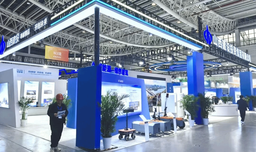 在主題形象展區(qū),集團(tuán)展示了山西?瀟河新城在綠色建造與低碳運(yùn)行方面的實(shí)踐成果,以及零碳機(jī)場(chǎng)建設(shè)、綠色化工、固廢綜合利用等方面的突出成效。集團(tuán)自主研發(fā)的石材磚鋪貼、激光地面整平、履帶地面抹平、四盤地面抹光、噴刮打磨一體、實(shí)測(cè)實(shí)量、消防值守等建筑機(jī)器人,也成為關(guān)注焦點(diǎn),生動(dòng)展示了智能建造與綠色施工的深度融合。