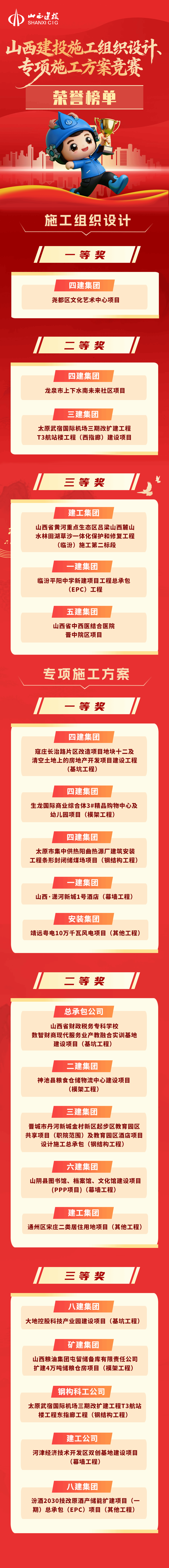現(xiàn)場評選環(huán)節(jié)設置了施工組織設計及基坑工程、模架工程、鋼結構工程、幕墻工程、其他工程專項施工方案多個競賽類別。經過激烈角逐,最終評選出施工組織設計一等獎1名、二等獎2名、三等獎3名,每類專項施工方案一、二、三等獎各一名。