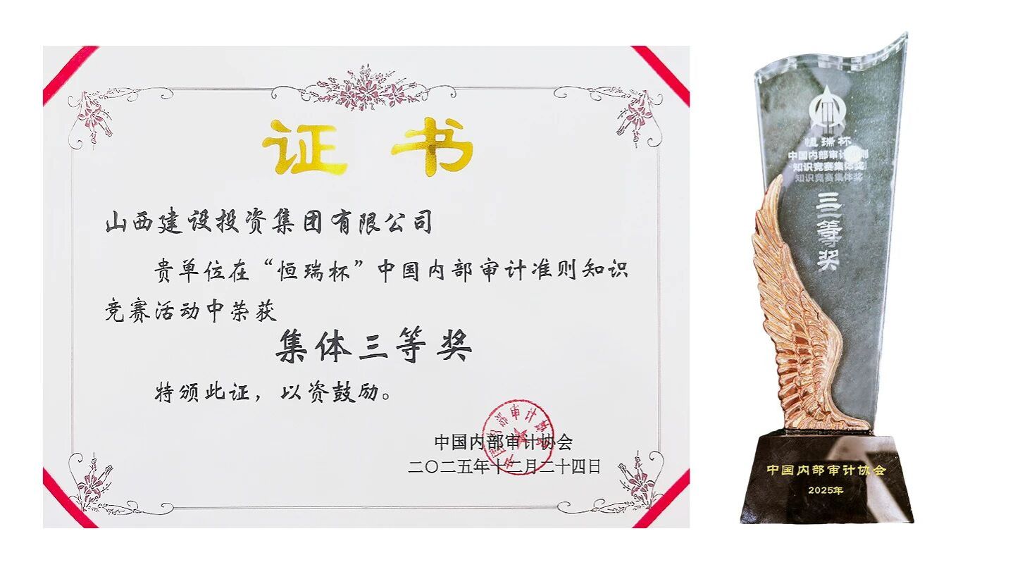 近日,在中國內(nèi)部審計協(xié)會舉辦的2025年“恒瑞杯”中國內(nèi)部審計準則知識競賽中,山西建投憑借出色的組織能力與專業(yè)水平,榮獲競賽集體三等獎,是山西省唯一獲獎單位。