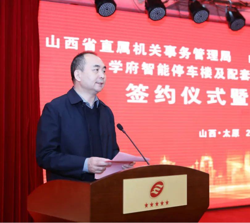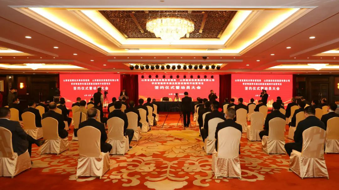 4月9日,太原學府智能停車樓及配套建筑特許經(jīng)營項目舉行簽約儀式暨動員大會。省直屬機關事務管理局局長毛益民、山西建投黨委書記、董事長孫波出席并講話。