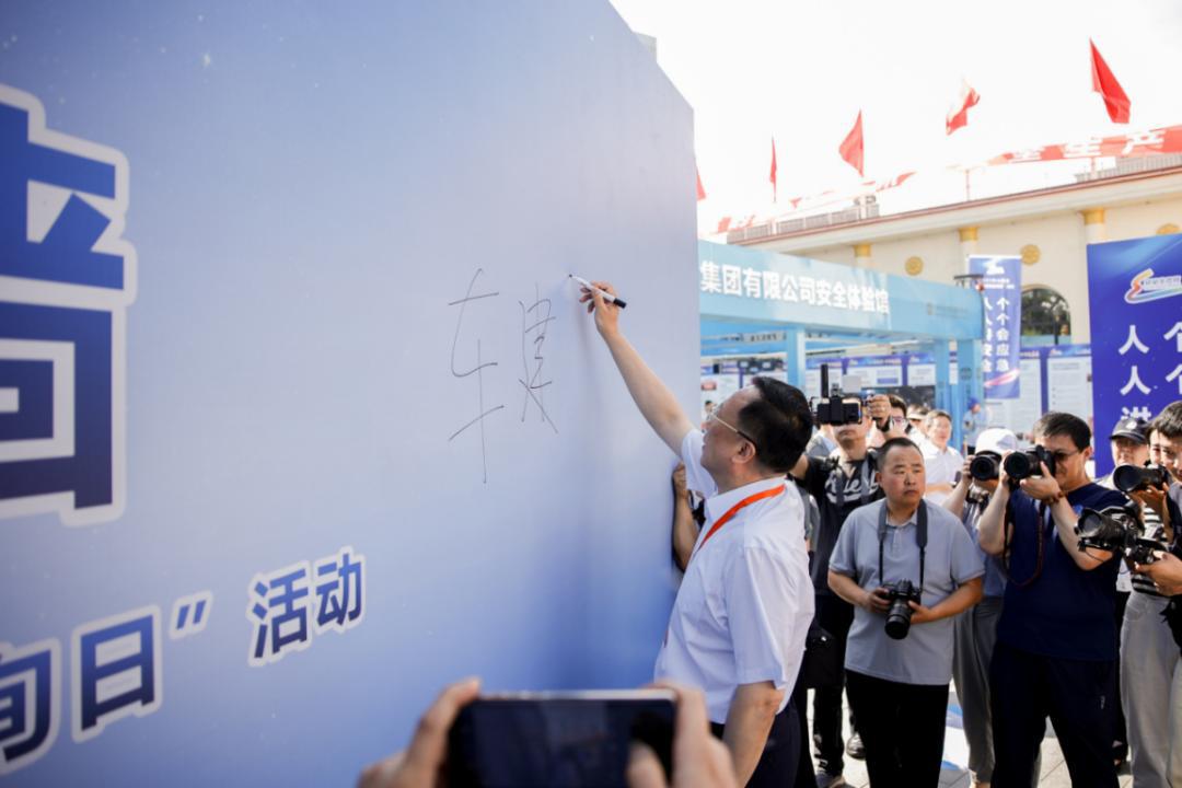 活動現(xiàn)場,安裝集團黨委書記、董事長王利民領(lǐng)誓,100余名企業(yè)員工代表和部分救援隊伍進行安全宣誓,與會人員簽名承諾,并巡視展區(qū)。