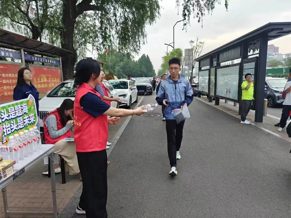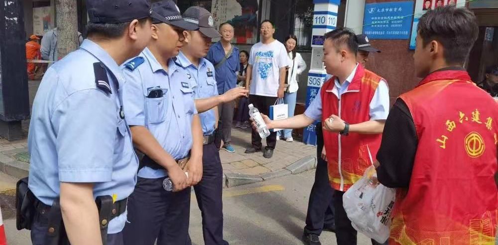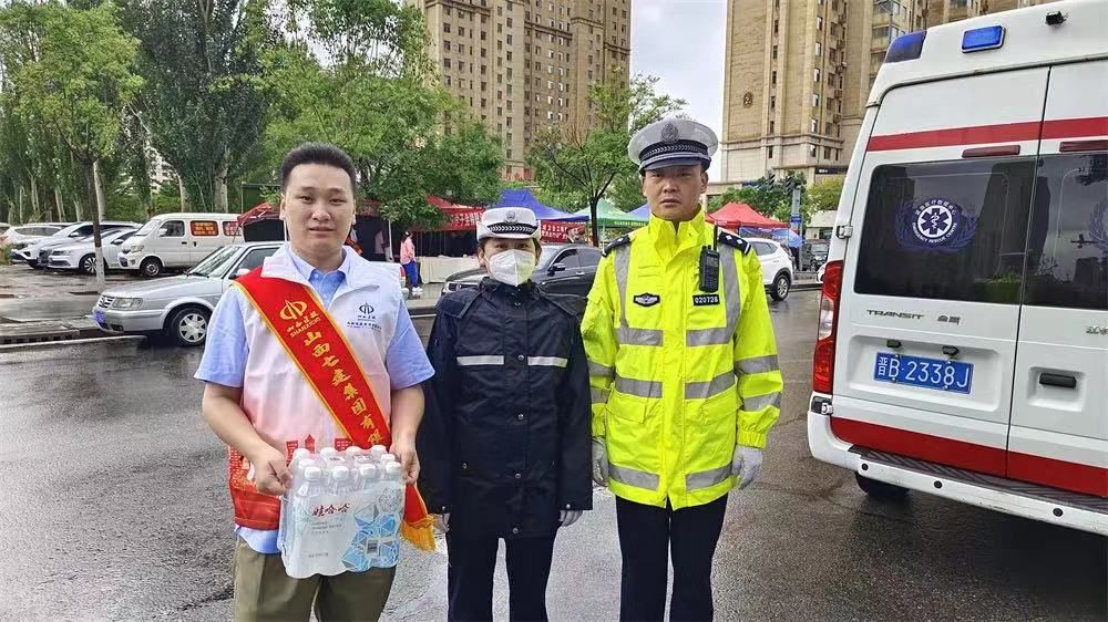 為守護(hù)在考場(chǎng)外的公安、交警等工作人員送上飲水,并全力協(xié)助交警在街頭巷尾維持交通秩序,確保考生能夠安全、快捷、順利抵達(dá)考場(chǎng)。