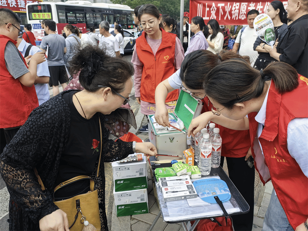 在考點(diǎn)外志愿服務(wù)站,為莘莘學(xué)子精心準(zhǔn)備“愛(ài)心文具包”、干濕紙巾、礦泉水及藿香正氣水、創(chuàng)可貼、碘伏、酒精等常用物品。