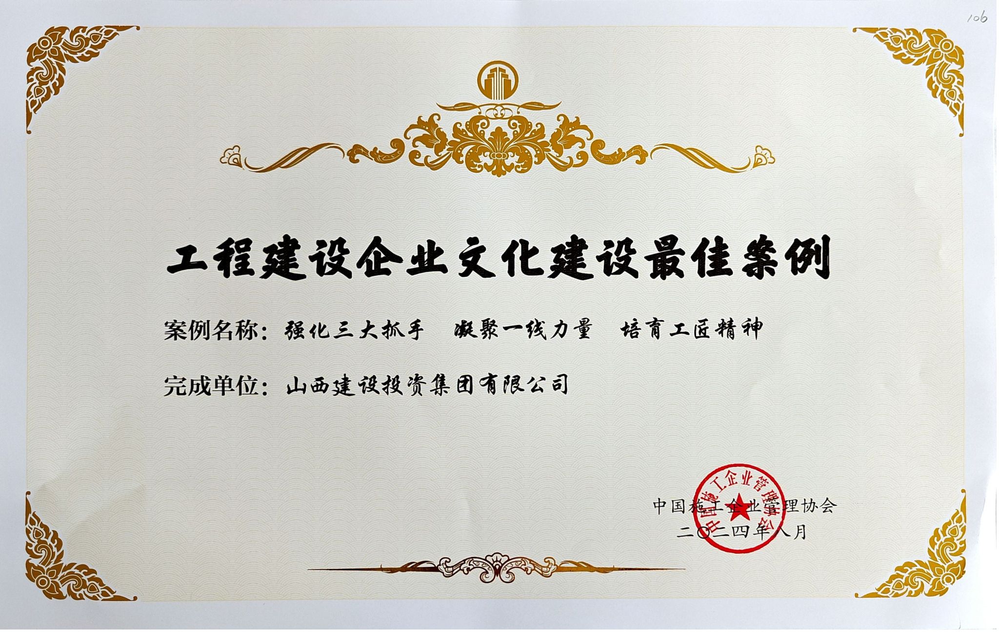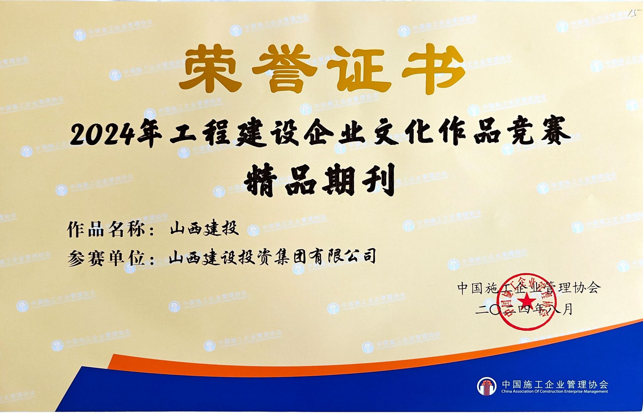9月4日至6日,中國施工企業(yè)管理協(xié)會在南京召開2024年工程建設企業(yè)文化建設成果交流會,表彰了工程建設企業(yè)文化建設先進案例及優(yōu)秀成果,山西建投集團共榮獲75項榮譽。