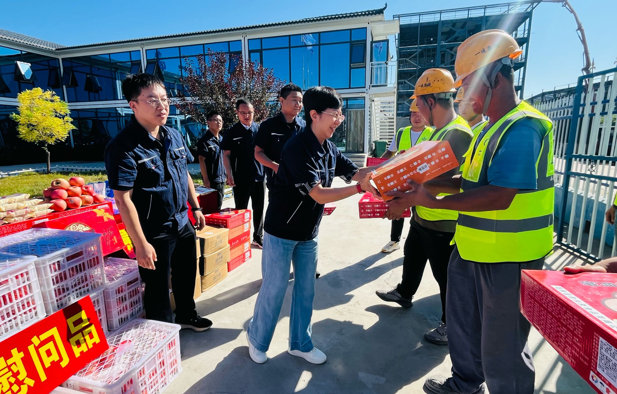 工程機械公司開展中秋慰問活動,為一線員工送上節(jié)日慰問品。