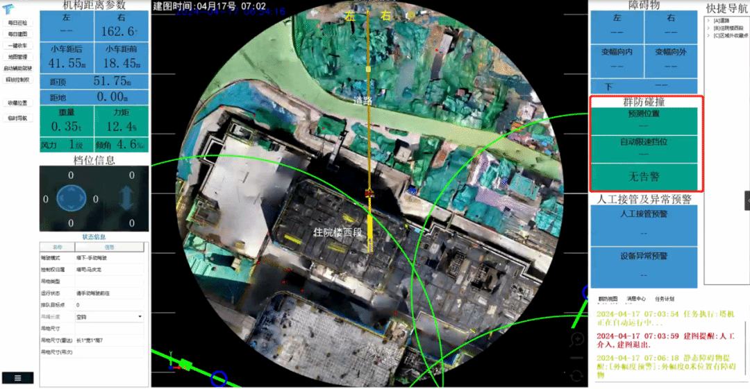 依托高精度激光雷達(dá)、傳感器、人工智能、物聯(lián)網(wǎng)、視覺重構(gòu)等,先進(jìn)設(shè)備與技術(shù)司機(jī)只需在地面上面對(duì)屏幕根據(jù)信息提示搖動(dòng)手柄就可使塔式起重機(jī)精準(zhǔn)流暢地將建筑材料吊裝至指定施工點(diǎn)位。