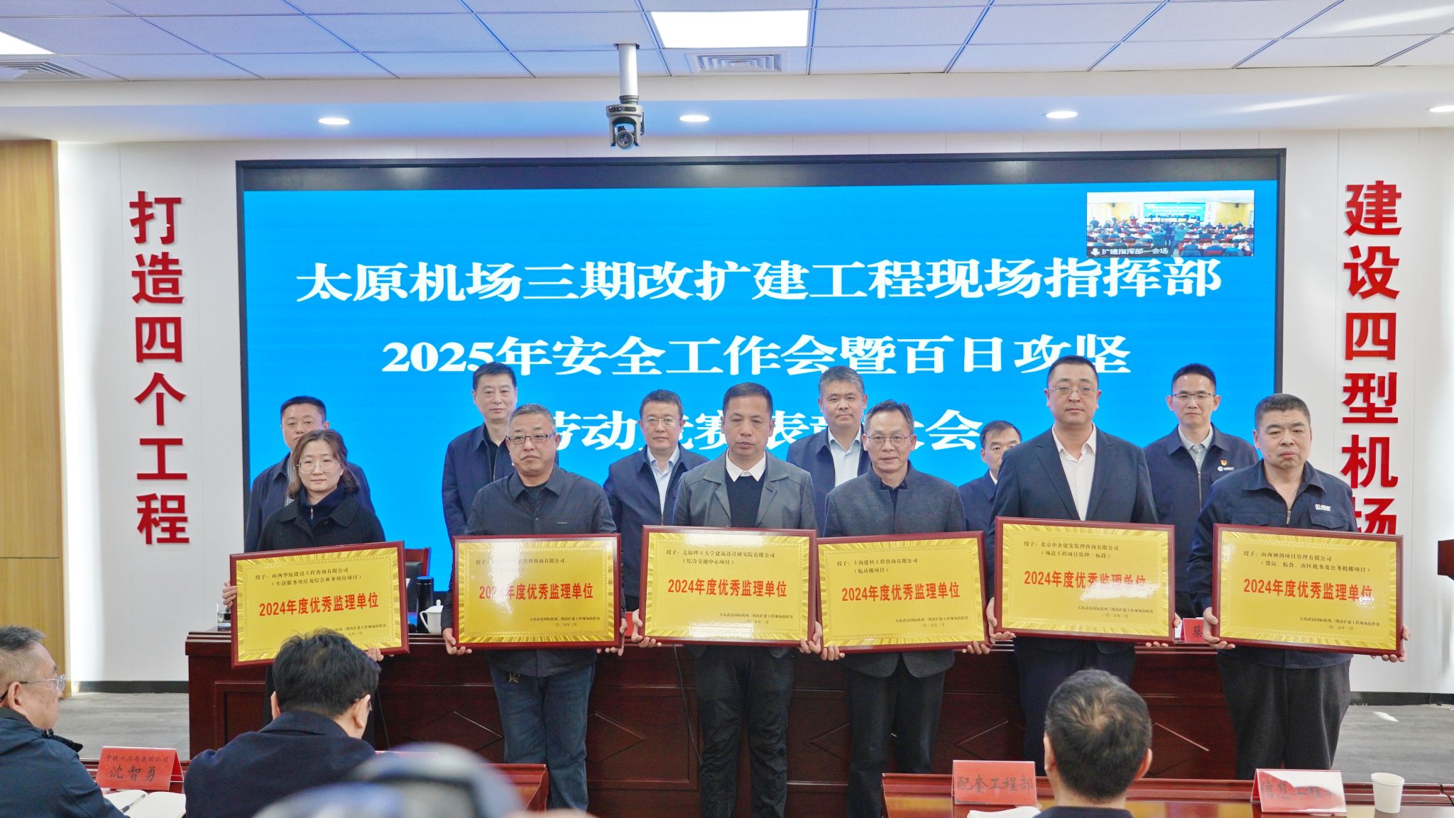 日前,太原機(jī)場(chǎng)三期改擴(kuò)建工程現(xiàn)場(chǎng)指揮部2025年安全工作會(huì)暨“百日攻堅(jiān)”勞動(dòng)競(jìng)賽表彰大會(huì)召開(kāi)。會(huì)上,山西建投集團(tuán)及所屬單位被授予百日攻堅(jiān)會(huì)戰(zhàn)突出貢獻(xiàn)獎(jiǎng)、百日攻堅(jiān)會(huì)戰(zhàn)優(yōu)秀單位獎(jiǎng)、2024年度安全文明施工先進(jìn)單位和優(yōu)秀監(jiān)理單位。
