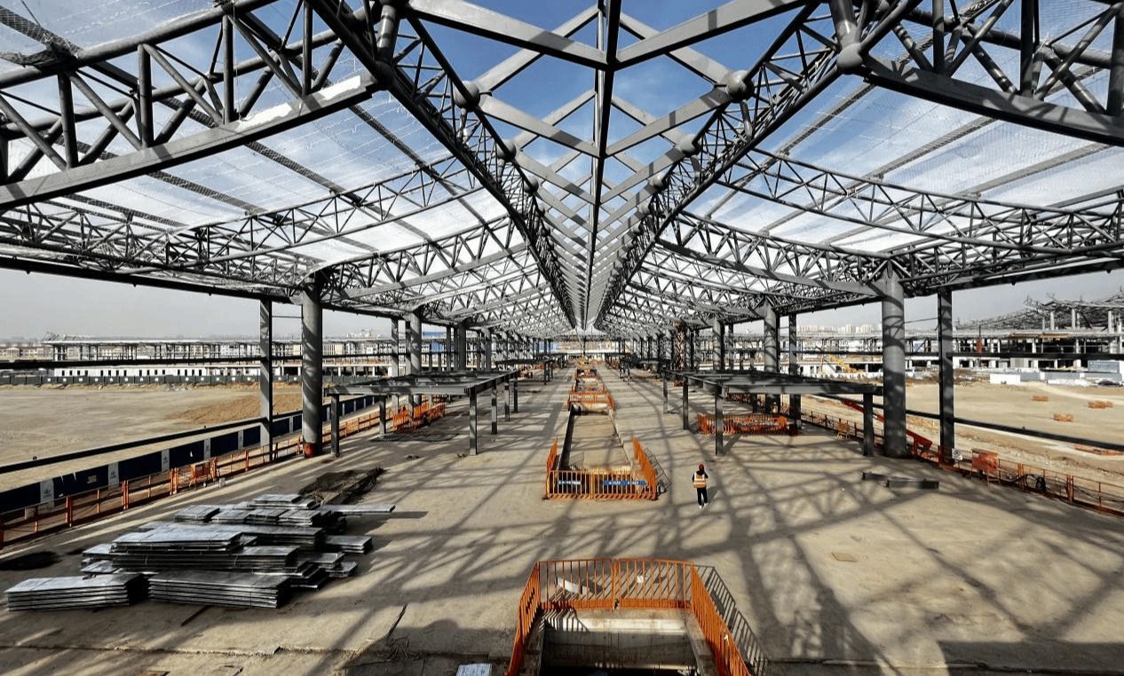 在2024年的“百日攻堅(jiān)”會(huì)戰(zhàn)中,建投集團(tuán)作為機(jī)場(chǎng)三期改擴(kuò)建T3航站樓項(xiàng)目的聯(lián)合體牽頭單位,充分發(fā)揮牽頭單位引領(lǐng)作用,在項(xiàng)目中展現(xiàn)出大軍團(tuán)作戰(zhàn)優(yōu)勢(shì),超額完成建設(shè)單位“百日攻堅(jiān)”會(huì)戰(zhàn)目標(biāo)。自會(huì)戰(zhàn)啟動(dòng)以來(lái),各參建單位在四個(gè)月的緊張施工中,積極應(yīng)對(duì),主動(dòng)作為。面對(duì)施工場(chǎng)地受限、地下管線復(fù)雜、環(huán)保要求嚴(yán)格以及交叉施工困難等問(wèn)題,項(xiàng)目團(tuán)隊(duì)通過(guò)組織優(yōu)勢(shì)資源、精密編排施工任務(wù)等措施,順利完成主體結(jié)構(gòu)封頂工作,為全面開(kāi)展鋼結(jié)構(gòu)、幕墻及金屬屋面工程創(chuàng)造有利條件。