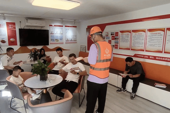 在項(xiàng)目上,藍(lán)白相間的“三站兩室”一體化愛心驛站格外醒目,里邊配備了醫(yī)藥箱、桌椅、圖書角、飲水機(jī)、充電器等設(shè)施。施工間隙休息,工人們便會(huì)來到這里休息喝水、翻看雜志、聊天娛樂。為確保愛心驛站的正常運(yùn)營(yíng),項(xiàng)目還制定了詳細(xì)的管理規(guī)定和使用制度,明確驛站的開放時(shí)間、使用規(guī)則、衛(wèi)生要求等,并指定專人負(fù)責(zé)日常管理和維護(hù)。