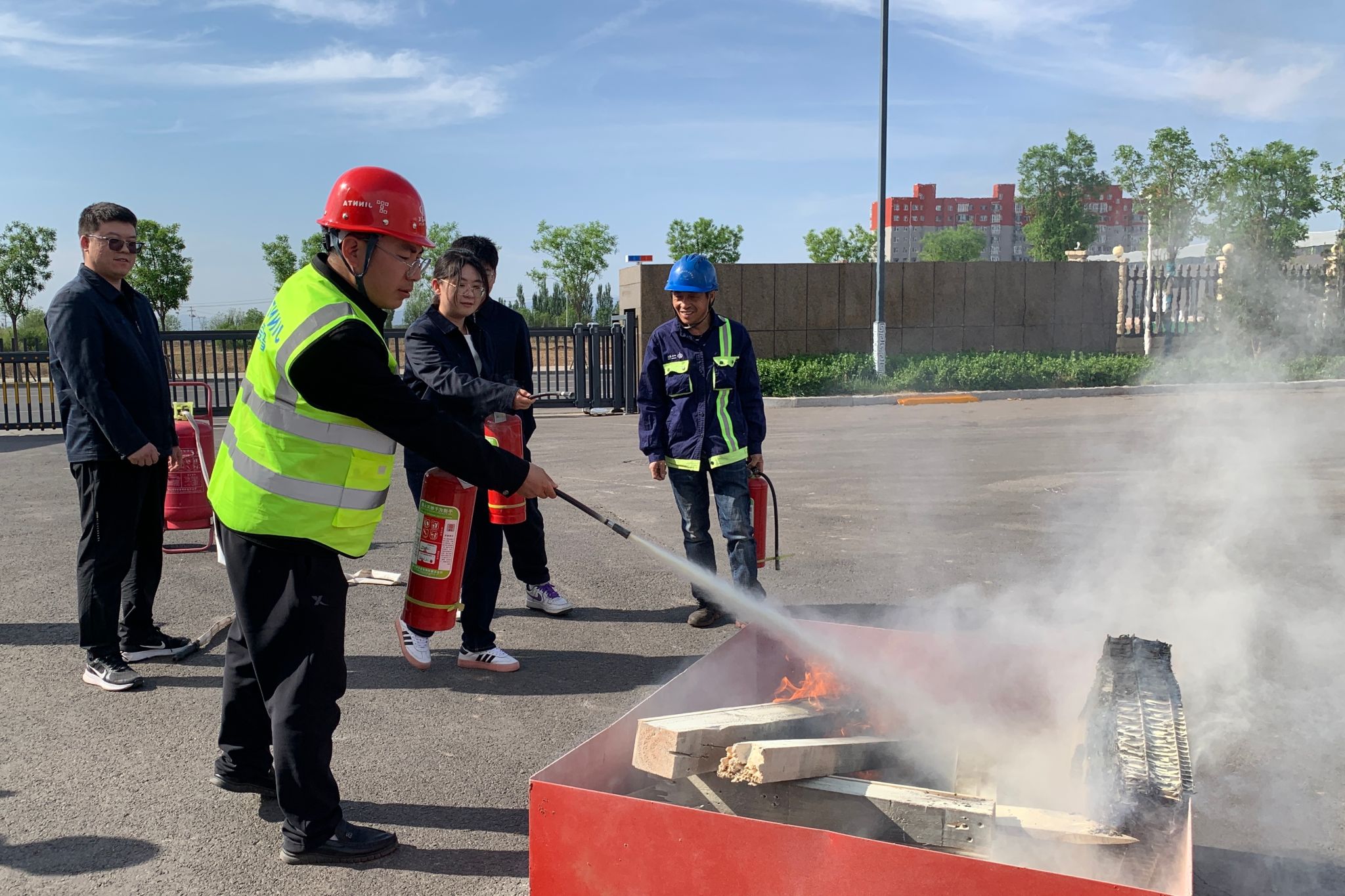 培訓后,開展了消防安全應(yīng)急演練。安然然現(xiàn)場演示滅火器操作流程,詳細講解了如何檢查消防器材、滅火時的操作要領(lǐng)和注意事項等。參訓職工依次使用滅火器進行噴射滅火,通過實戰(zhàn)演練將理論知識轉(zhuǎn)化為實際操作能力。