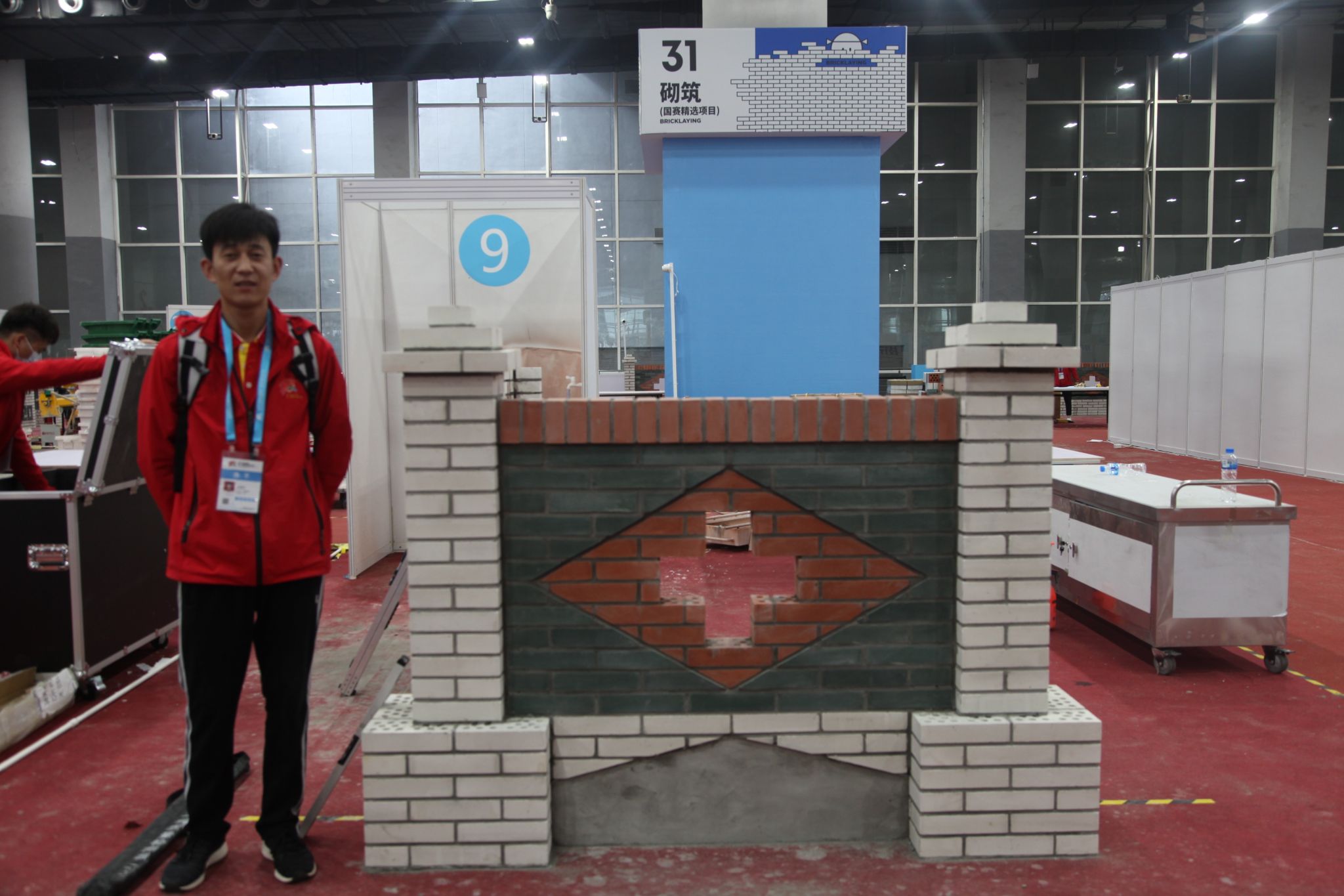 他同時還擔(dān)任著四建集團(tuán)職業(yè)技能提升管理中心的導(dǎo)師一職。實(shí)訓(xùn)樓里,“就業(yè)燃亮生活 勞動創(chuàng)造未來”的標(biāo)語激蕩人心,學(xué)員們正在分組練習(xí)砌筑、支模、鑲貼等,備戰(zhàn)今年9月份即將舉行的中華人民共和國第三屆職業(yè)技能大賽。一手持測量工具,一手撫過墻體上的復(fù)雜造型,呂國平告訴學(xué)員:“砌筑的時候一定要注重細(xì)節(jié)???,這幾塊磚的塊拼接不夠流暢,圓弧要慢慢地磨,稍有差池就高低不平,影響整體效果。”