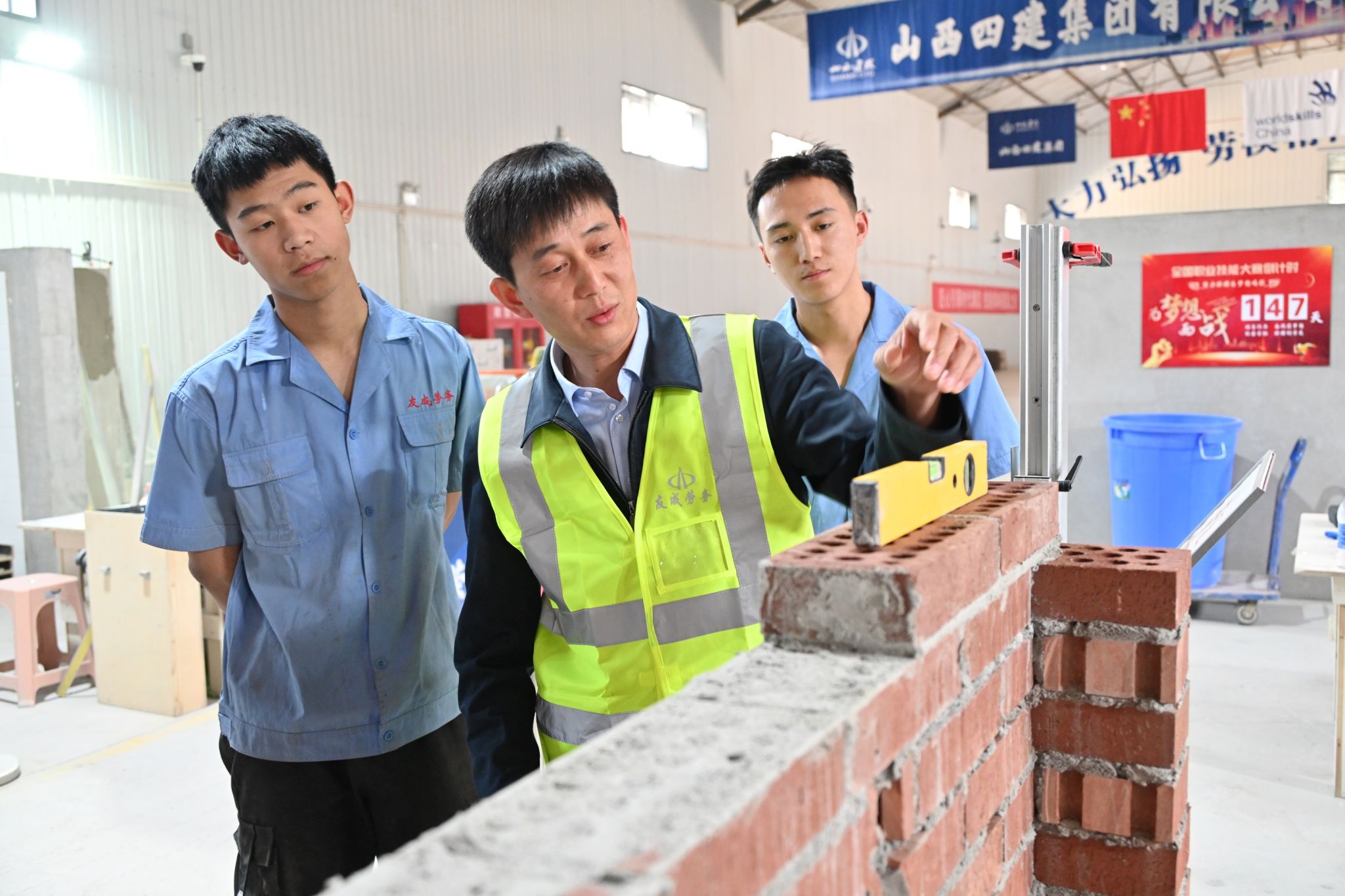實(shí)訓(xùn)樓里有一面榮譽(yù)墻,一張張照片見證了呂國平和同伴們在技能大賽中的風(fēng)采以及四建集團(tuán)產(chǎn)業(yè)工人隊伍建設(shè)的成果。20余人分別榮獲山西省五一勞動獎?wù)隆⑷龝x技術(shù)能手等榮譽(yù)稱號。特別是申艷豹、申紅瑞二人,在2024年全國住房城鄉(xiāng)建設(shè)行業(yè)職業(yè)技能大賽—砌筑項(xiàng)目中獲第一名(金牌)和第四名,實(shí)現(xiàn)了我省在全國一類賽中金牌零的突破。這一成績的取得,源于企業(yè)持之以恒推進(jìn)產(chǎn)業(yè)工人素質(zhì)提升,通過構(gòu)建匠心傳承+梯隊培養(yǎng),將工匠精神融入企業(yè)發(fā)展血脈。