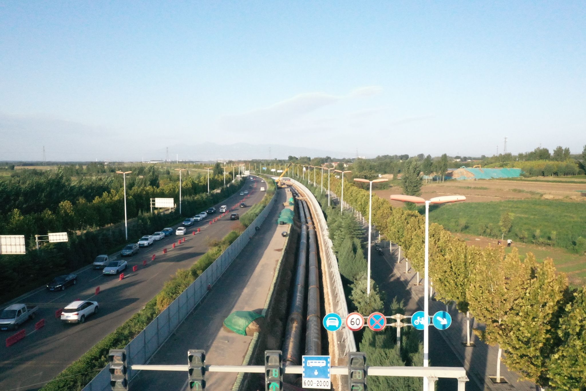 臨汾市綠色能源輸配項目全線從洪洞縣恒富北至臨汾市堯都區(qū)中心城區(qū)站,包含97千米能源輸配管網(wǎng)和5座綠色能源輸配站建設,其中山西建投一建集團負責27.8千米供熱管道安裝和1座能源站的建設實施。項目建成后,將為臨汾市“一城三區(qū)”(洪洞縣城、臨汾城區(qū)、襄汾縣城)提供綠色能源,預計年供熱量達2206萬吉焦,每年可減少二氧化碳排放508.51萬噸、粉塵排放量131.6萬噸,對改善區(qū)域環(huán)境質量、推動城市綠色轉型具有重要意義。