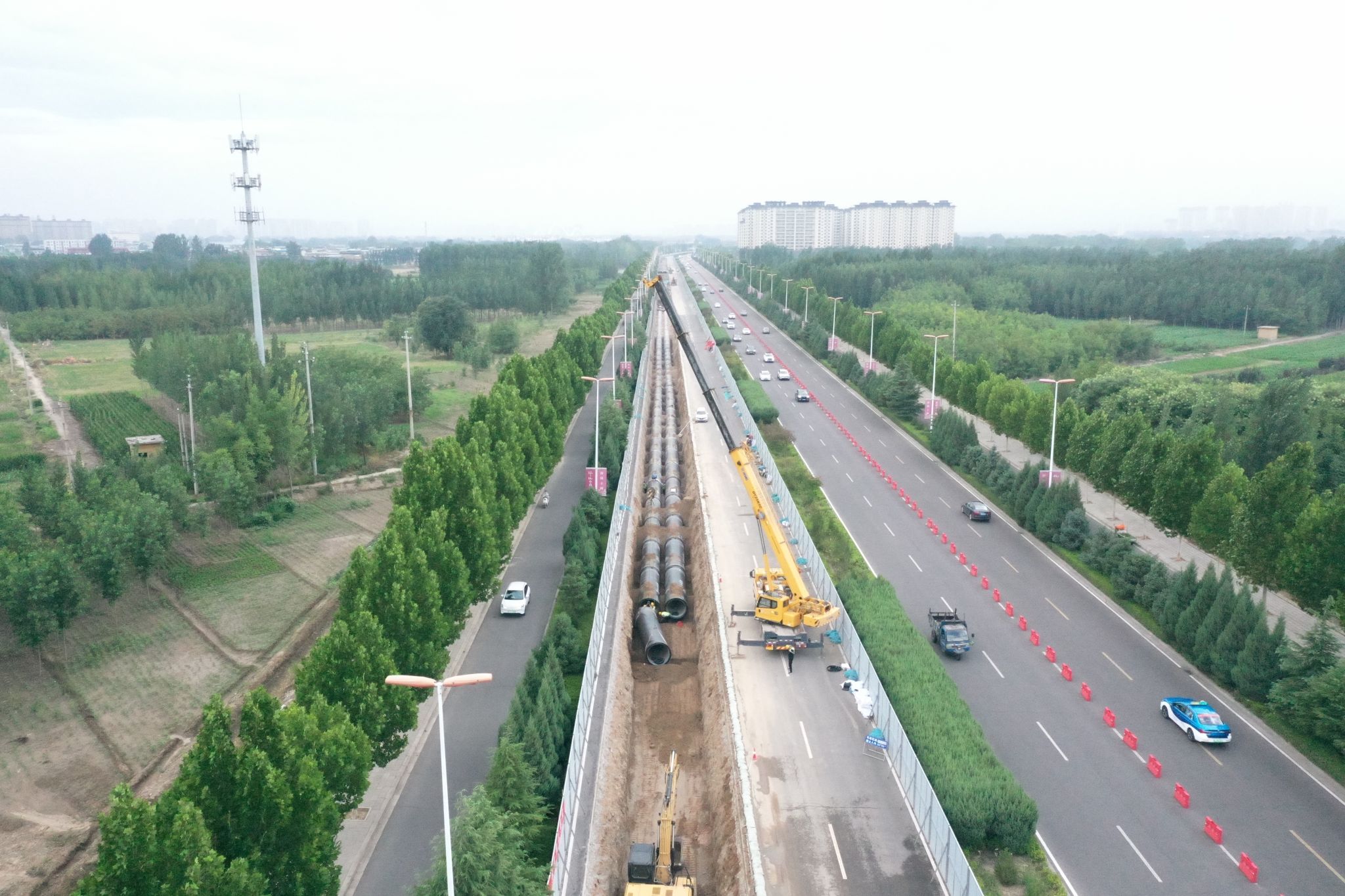 針對工程線路長、工期緊的特點,項目團隊采用分段平行施工模式,將全程劃分為兩個獨立標段同步推進。通過成立專項工作組,編制可視化敷設路線圖,系統(tǒng)優(yōu)化工序銜接和資源調配,投入3個管道施工班組、4個土建作業(yè)班組、3個機械作業(yè)班組,配備10余臺大型機械設備和20余臺專用運輸車輛,構建起高效運轉的施工網(wǎng)絡。