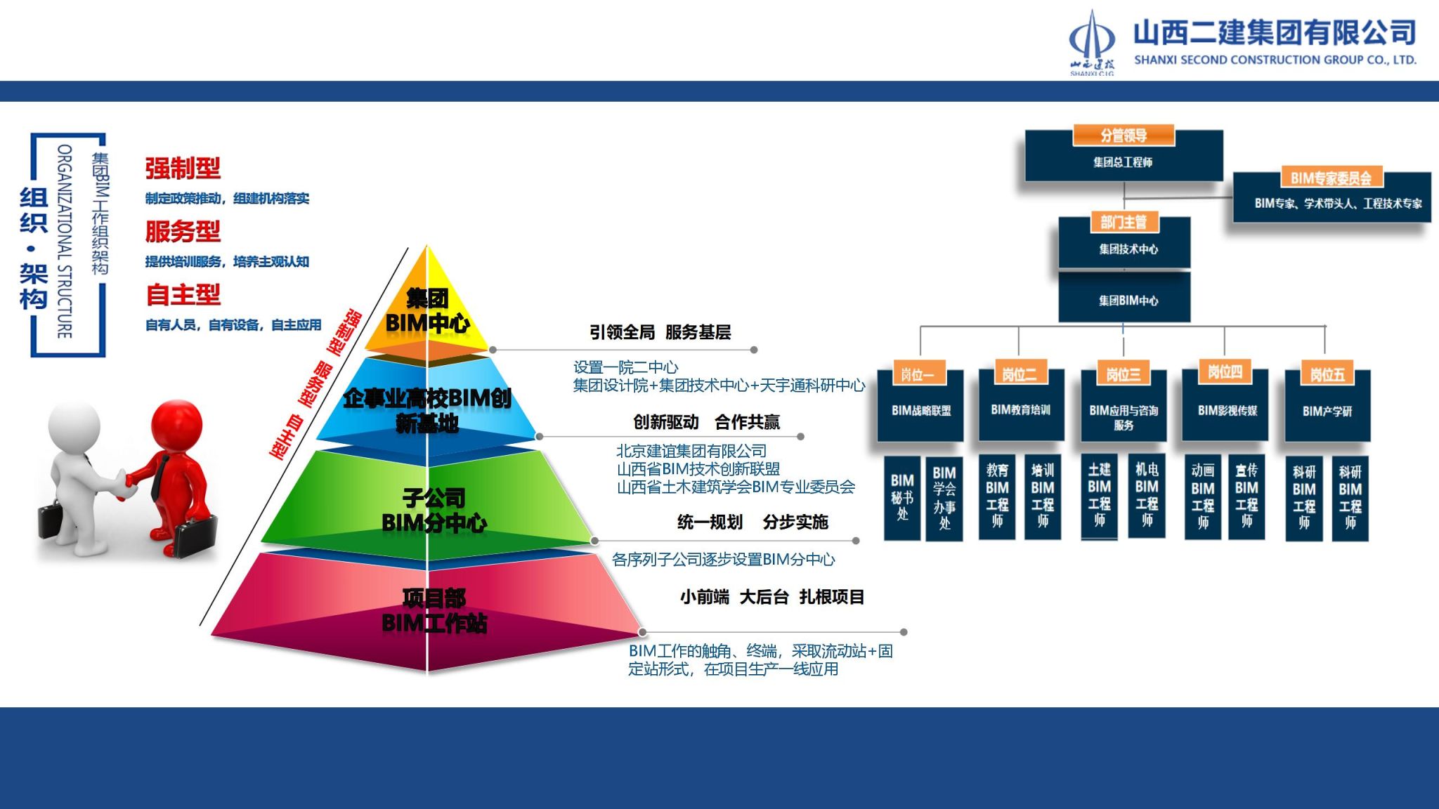面對(duì)建筑業(yè)轉(zhuǎn)型發(fā)展的時(shí)代要求,集團(tuán)打破了BIM技術(shù)“單點(diǎn)應(yīng)用”的模式,推動(dòng)走向系統(tǒng)集成,開(kāi)展了以“體系賦能業(yè)務(wù)”為核心的深刻變革。
