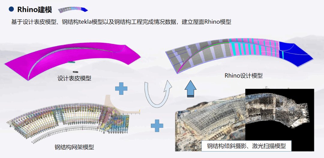 BIM與參數(shù)化結合攻克異形結構難題。面對山西瀟河國際會展中心異形雙曲金屬屋面的超高難度挑戰(zhàn),項目團隊展現(xiàn)了BIM技術在處理復雜幾何形態(tài)與精準下料施工上的突破。其技術核心是將BIM理念與Rhino+Grasshopper參數(shù)化建模深度結合。通過激光掃描獲取現(xiàn)場數(shù)據(jù)后,在BIM環(huán)境中進行碰撞檢測與誤差調(diào)整,并對屋面鋼板進行曲率核驗與板塊優(yōu)化,最終輸出精準的加工和定位數(shù)據(jù),將加工運輸效率提升近40%,確保了復雜設計理念的完美落地。
