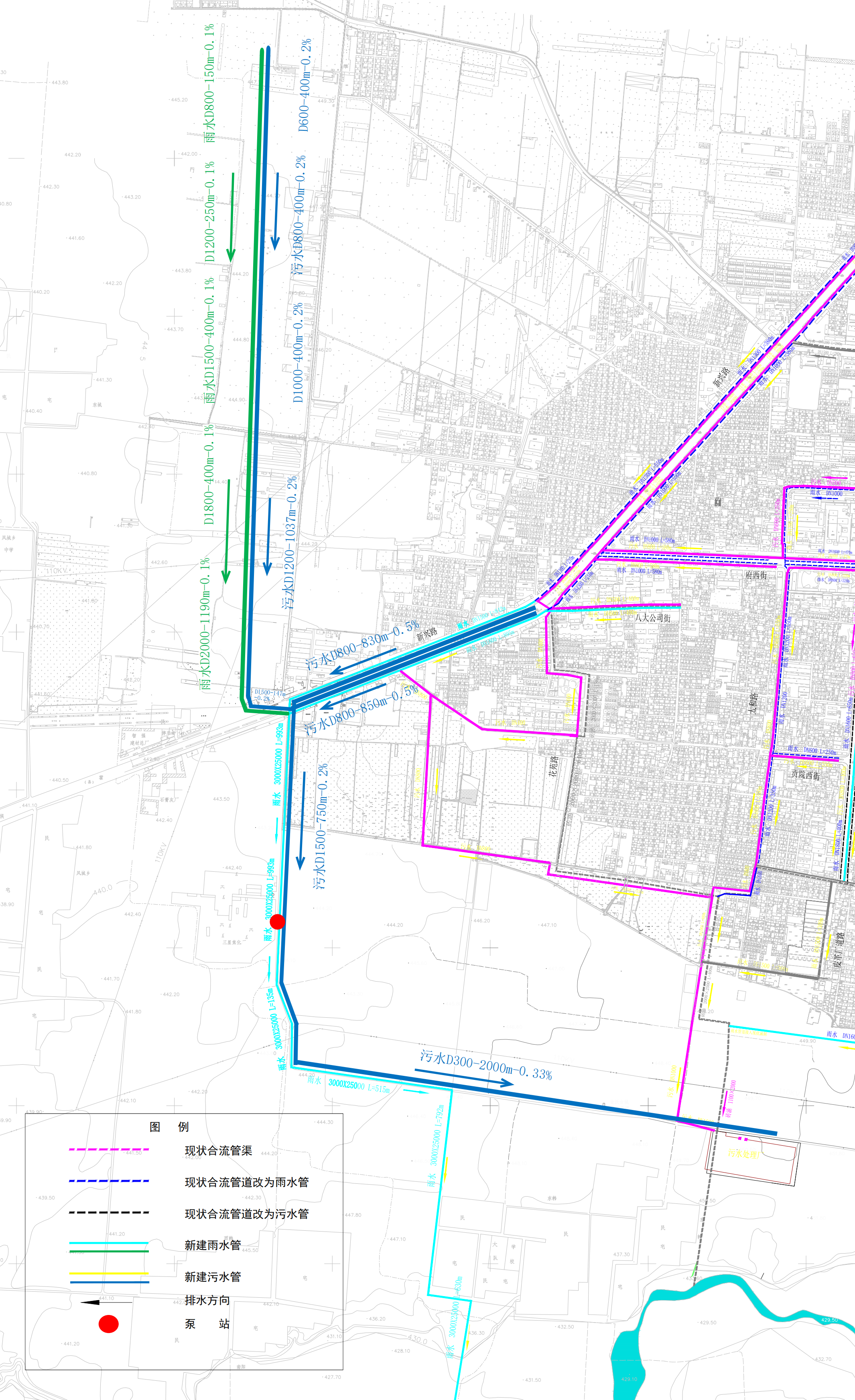 曲沃縣西城區(qū)排水主管網(wǎng)走向圖