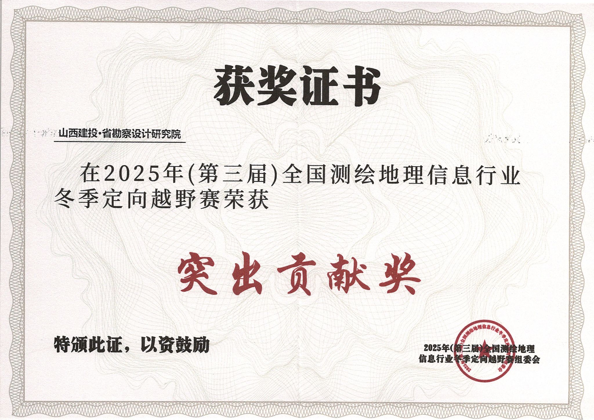 在比賽中,參賽團隊?wèi){借過硬專業(yè)技術(shù)、默契配合協(xié)作與頑強拼搏精神,充分展現(xiàn)了公司測繪專業(yè)風(fēng)采,也彰顯了公司在測繪地理信息領(lǐng)域的深厚技術(shù)底蘊與強勁市場競爭力。個人賽場上,技術(shù)精英孫長俊、何光輝雙雙拿下青年男子組二等獎,其中孫長俊位列山西省青年組首位;張愷斬獲青年男子組三等獎。團隊?wèi){借優(yōu)秀的組織協(xié)調(diào)能力與行業(yè)貢獻度,成功斬獲賽事“突出貢獻獎”。
