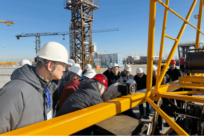 現(xiàn)場教學(xué)以“實景賦能、精準傳技”為核心,依托公司智能化聯(lián)合廠房和東廣場產(chǎn)品展示區(qū)兩大核心實訓(xùn)場景展開。在專業(yè)講師的帶領(lǐng)下,參訓(xùn)學(xué)員深入生產(chǎn)一線,沉浸式參觀塔式起重機片式標準節(jié)生產(chǎn)線和智能化涂裝生產(chǎn)線,近距離觀摩塔式起重機、施工升降機、建筑防護裝備、建筑機器人等機械設(shè)備的運行演示,深入了解各項設(shè)備的技術(shù)原理與安全保護裝置。