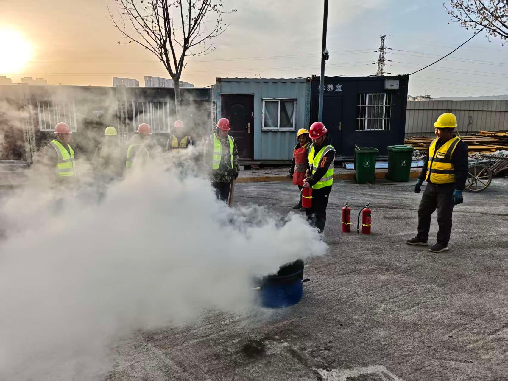 安全生產(chǎn)是工程建設(shè)的“生命線”,項目團(tuán)隊始終將安全管理擺在首位。為強化全員安全意識、提升應(yīng)急處置能力,項目組織開展消防應(yīng)急演練活動:從火情報警、人員疏散到滅火器實操、消防水帶連接,演練環(huán)節(jié)緊扣施工現(xiàn)場實際,流程規(guī)范、分工明確。通過實戰(zhàn)化的演練,不僅讓施工人員熟練掌握了消防器材的使用方法與應(yīng)急逃生技巧,更進(jìn)一步完善了項目應(yīng)急預(yù)案,筑牢了施工現(xiàn)場的消防安全防線。