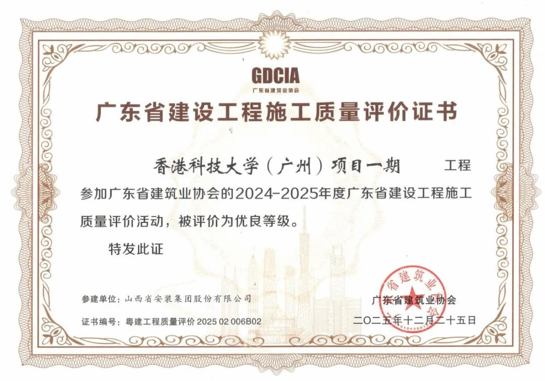 近日,山西建投安裝集團(tuán)香港科技大學(xué)(廣州)項(xiàng)目一期工程榮獲廣東省建設(shè)工程施工質(zhì)量優(yōu)良等級評價(jià),標(biāo)志著安裝集團(tuán)在粵港澳大灣區(qū)機(jī)電安裝市場的競爭力再獲認(rèn)可。