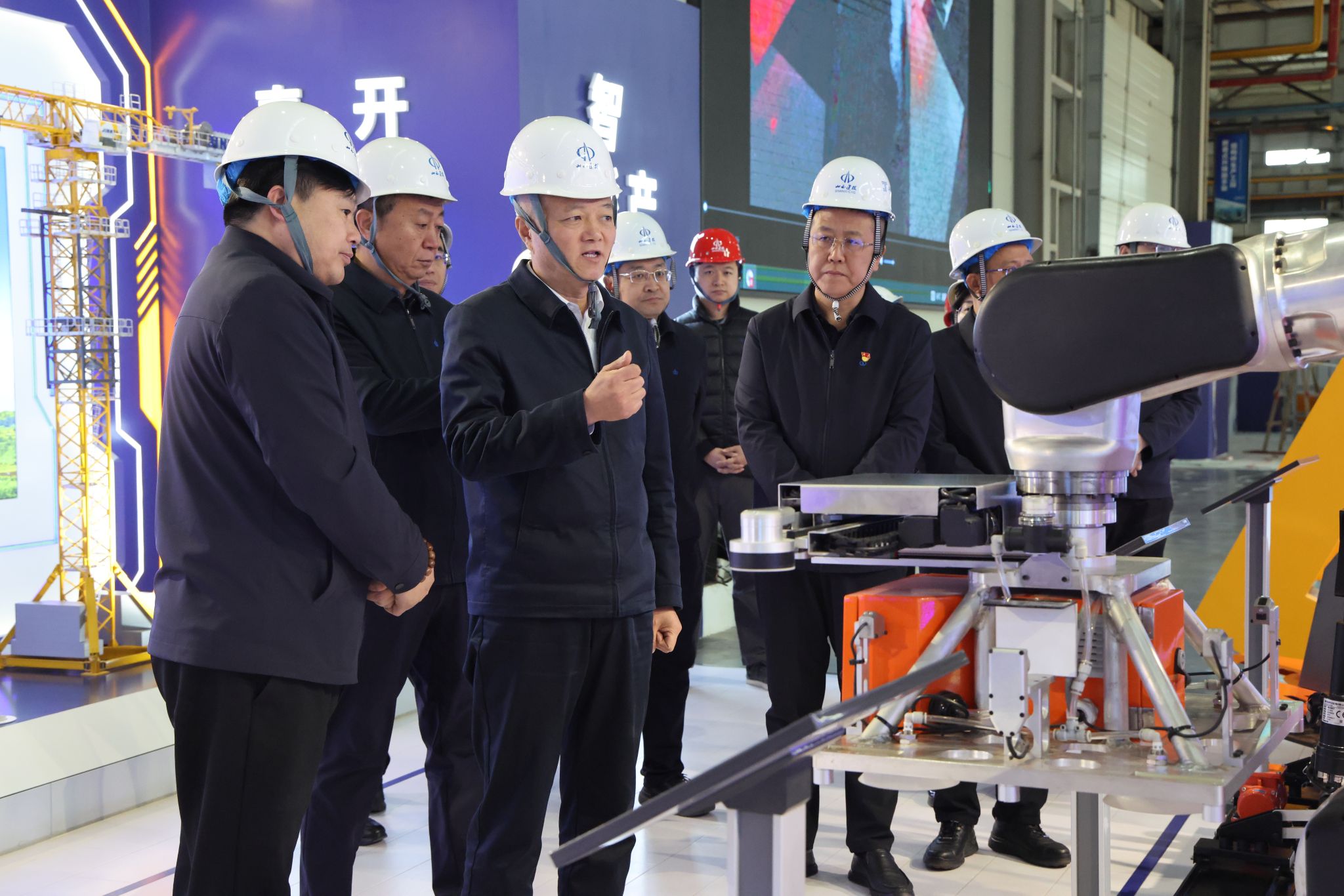 杜銳深入工程機(jī)械公司智能化聯(lián)合廠房,參觀了工程機(jī)械公司智能產(chǎn)品展示區(qū),察看了塔式起重機(jī)片式標(biāo)準(zhǔn)節(jié)智能化生產(chǎn)線和涂裝線,實地調(diào)研了正在籌備建設(shè)的機(jī)器人生產(chǎn)組裝生產(chǎn)線和新品建筑機(jī)器人等設(shè)備。
