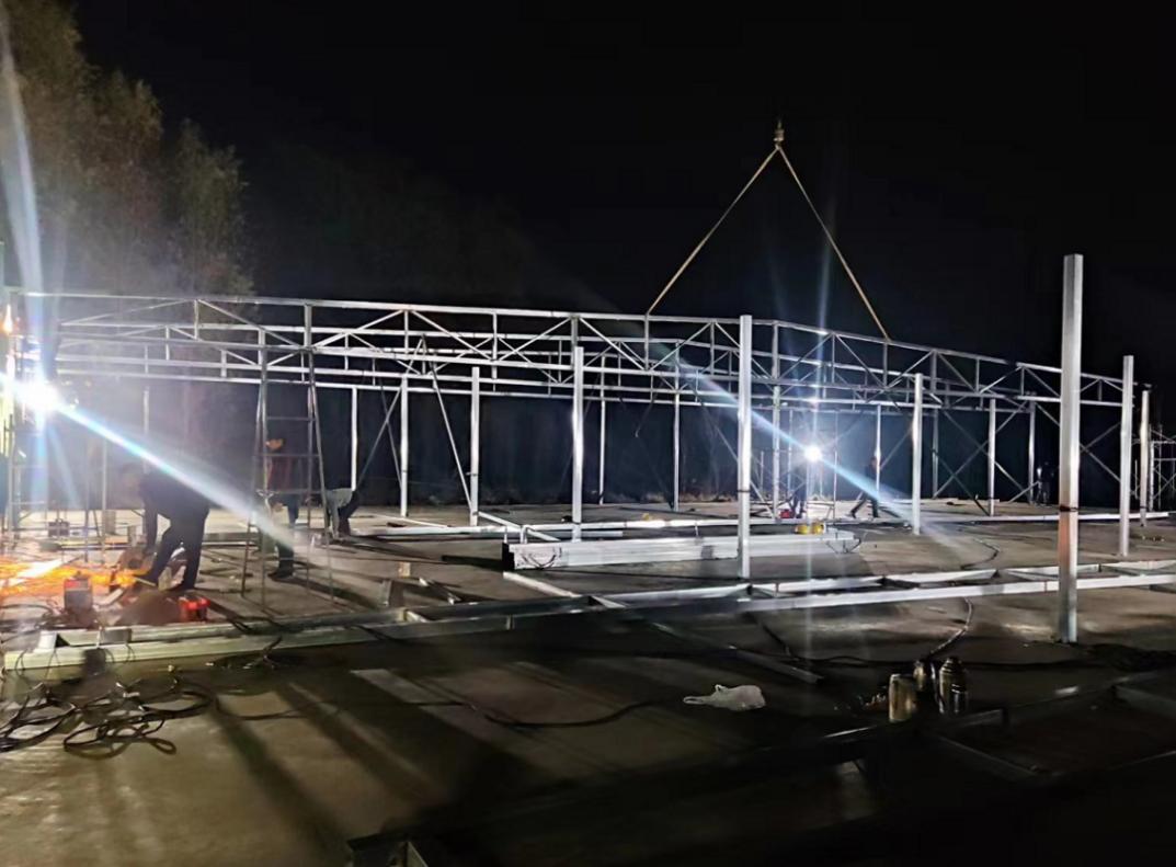 集團接到忻州市級方艙醫(yī)院建設(shè)任務(wù)后,聞令而動,迅速統(tǒng)籌解決人員、材料、機械設(shè)備等,以最短的時間集結(jié)精干隊伍400余人,以最快速度奔赴忻州市執(zhí)行方艙醫(yī)院建設(shè)任務(wù)。面對時間緊、任務(wù)重,全體參建人員發(fā)揚特別能吃苦、特別能戰(zhàn)斗的拼搏精神,嚴(yán)格執(zhí)行24小時輪班制,分區(qū)域、分組協(xié)同連續(xù)奮戰(zhàn),確?,F(xiàn)場不停工,提速再提速。