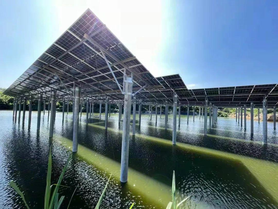 這就是山西建投一建集團(tuán)EPC總承包的中航廉江良垌90MW漁光互補(bǔ)光伏電站項(xiàng)目,該項(xiàng)目是一建集團(tuán)在國家“雙碳”目標(biāo)的背景下,在自身光伏行業(yè)深耕多年的經(jīng)驗(yàn)傳承下,結(jié)合當(dāng)?shù)氐沫h(huán)境特點(diǎn),采用“漁光互補(bǔ)”設(shè)計(jì)方式,最終將規(guī)劃區(qū)域打造成集光伏電站建設(shè)、光伏先進(jìn)技術(shù)示范、特色水產(chǎn)品養(yǎng)殖、特色漁業(yè)休閑旅游、特色農(nóng)業(yè)種植為一體的綜合開發(fā)基地。