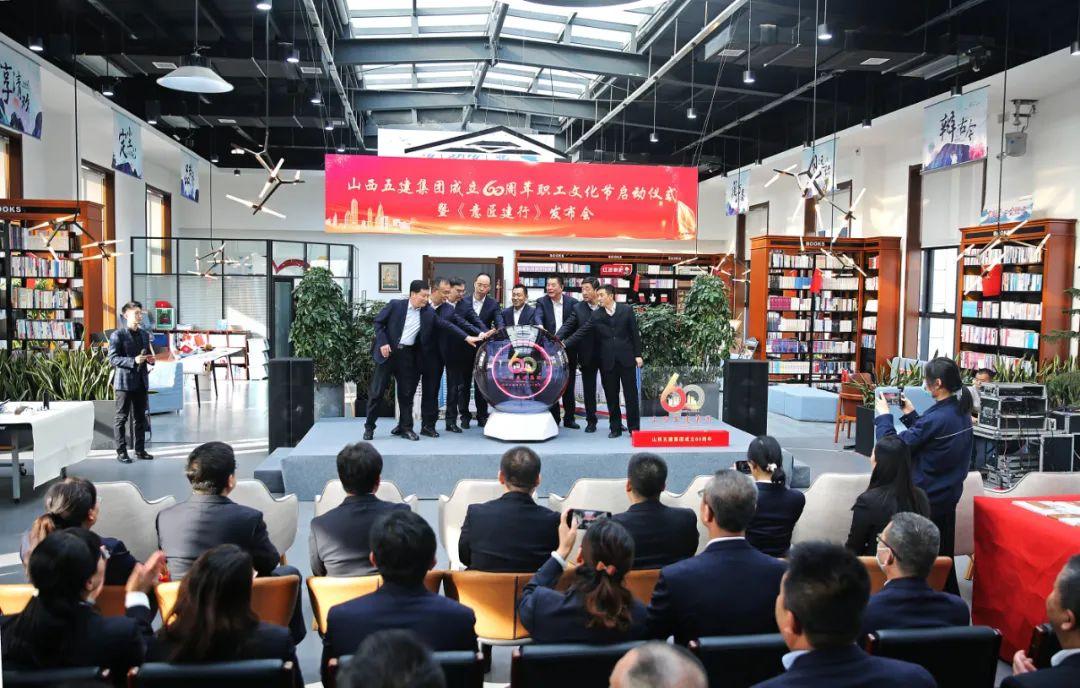 領(lǐng)導(dǎo)班子成員共同按動啟動球,成立60周年職工文化節(jié)正式啟動,《意匠建行》正式發(fā)布。