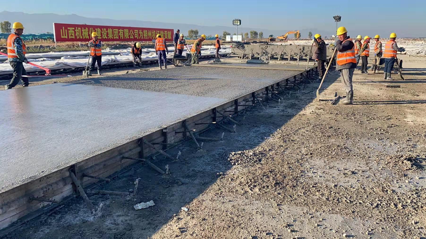 公司承建的山西朔州新建民用機(jī)場(chǎng)項(xiàng)目是省市重點(diǎn)工程,按照業(yè)主要求“兩年建成三年通航”的施工任務(wù)總目標(biāo),公司8項(xiàng)分部、分項(xiàng)工程同時(shí)展開平行流水施工,即地基處理、山皮石回填、水穩(wěn)底基層、水穩(wěn)基層、混凝土面層、排水工程、消防工程、圍界工程,分區(qū)、分段流水施工,工序銜接緊湊,施工現(xiàn)場(chǎng)場(chǎng)面宏偉壯觀。