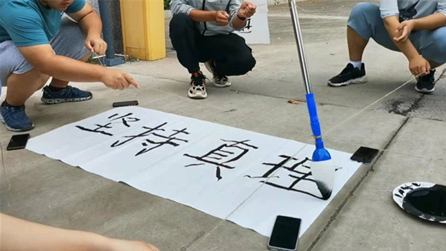 團(tuán)結(jié)“書”輝煌。本環(huán)節(jié)中,新員工將線繩一端系在筆上,一端手拉線繩,在不接觸筆的規(guī)則下,趣味書寫偉大建黨精神內(nèi)容。書寫中,大家共同討論偉大建黨精神內(nèi)容、書寫方法、技巧,通過團(tuán)結(jié)協(xié)作完成書寫任務(wù)。本環(huán)節(jié)提高了學(xué)習(xí)興趣,使新員工學(xué)有所獲、學(xué)有所樂。