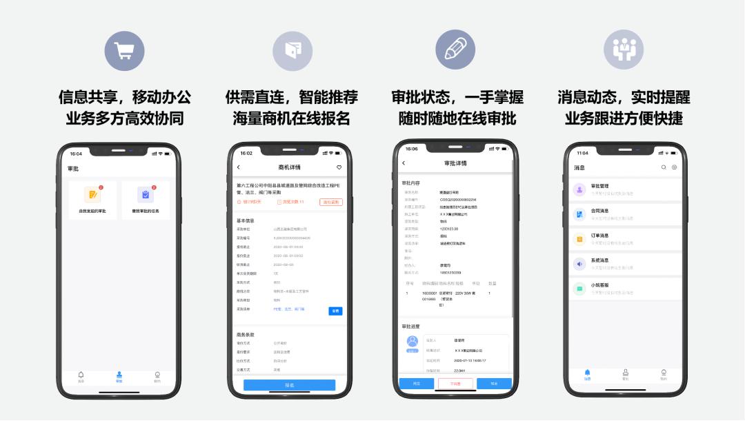 目前,“筑服云”APP功能包括實時消息提醒、商機訂閱報名、在線審批管理以及賬號信息維護等。同時為更好地服務(wù)用戶,滿足用戶實際業(yè)務(wù)需求,按照采購商、供應(yīng)商身份打造了兩版APP:筑服云采與筑服云商,現(xiàn)iOS和Android版本均已上線,用戶可下載使用。