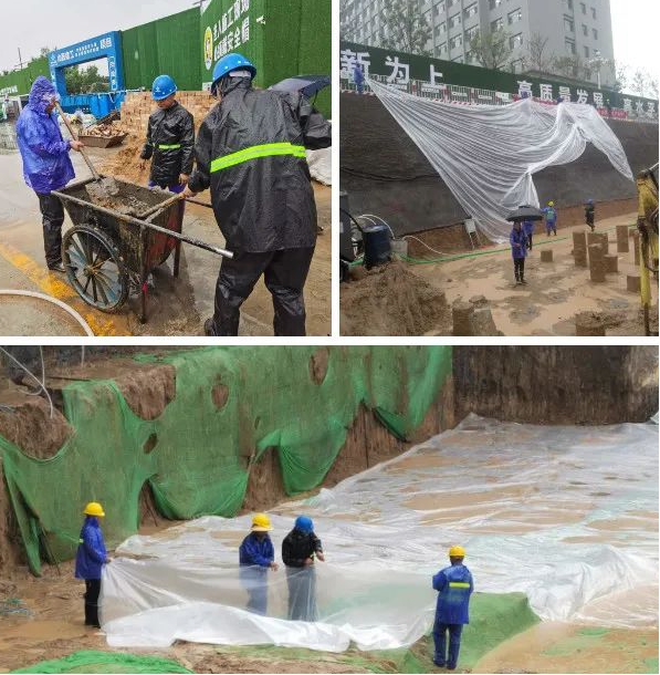 面對暴雨,項目部迅速啟動防汛應急預案,作為共產(chǎn)黨員的經(jīng)理邢慶豐第一時間奔赴現(xiàn)場指揮工作,帶領(lǐng)項目部青年突擊隊和全體管理人員,頂風冒雨在基坑內(nèi)開展排水搶險。生動詮釋出黨支部“三面紅旗高高飄揚”的支部特色,是公司黨員聯(lián)系點“1+N”活動的又一具體實踐。