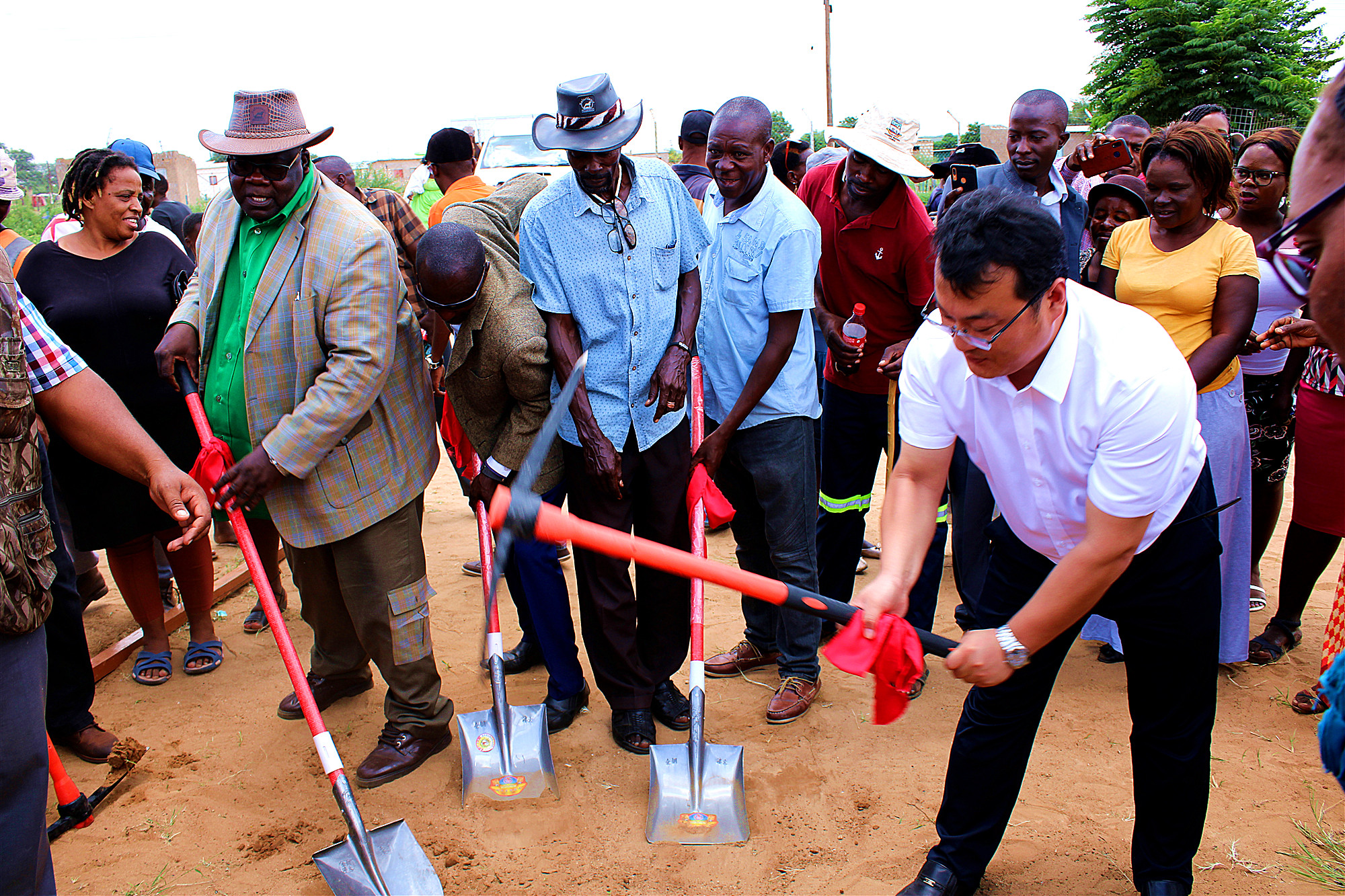 納米比亞教育部官員、區(qū)政府領(lǐng)導,非洲開發(fā)銀行代表、中方代表、校方代表及當?shù)厝罕娂s100人共同參加了開工儀式。山西建投納米比亞分公司經(jīng)理高勇與外方代表共同為項目奠基。