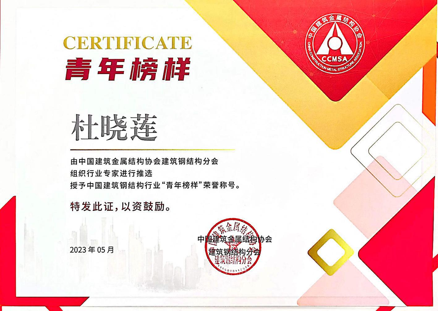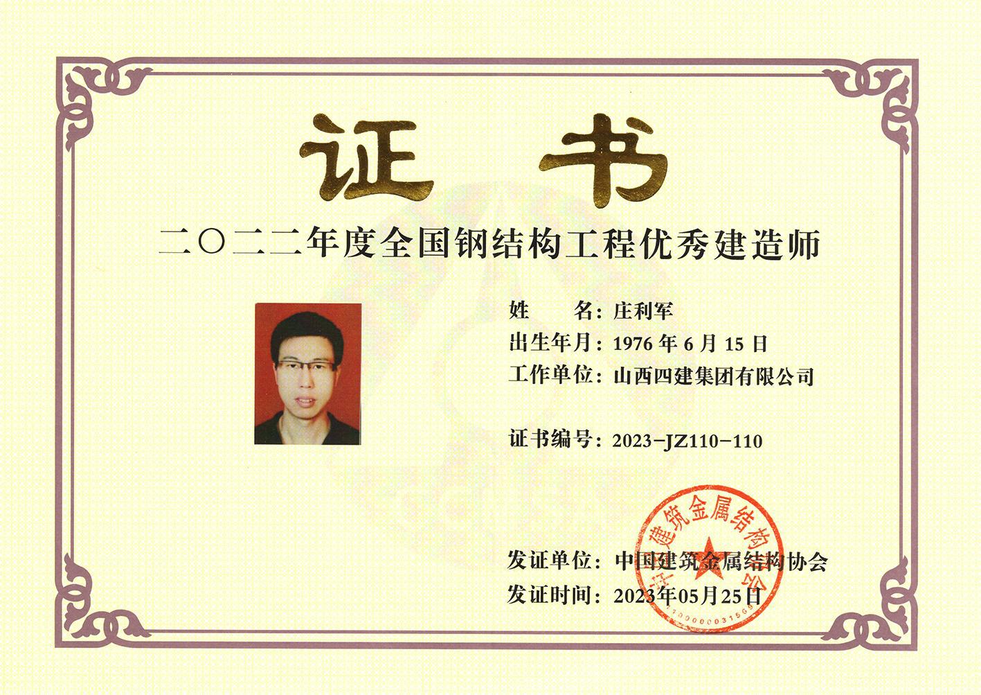 “二O二二年度全國(guó)鋼結(jié)構(gòu)工程優(yōu)秀建造師”證書