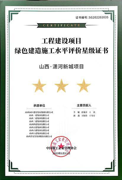 日前,中國施工企業(yè)管理協(xié)會(huì)公布2022年第二批工程建設(shè)項(xiàng)目綠色建造施工水平評(píng)價(jià)結(jié)果,山西·瀟河新城榮獲最高等級(jí)“工程建設(shè)綠色建造施工水平三星評(píng)價(jià)”。