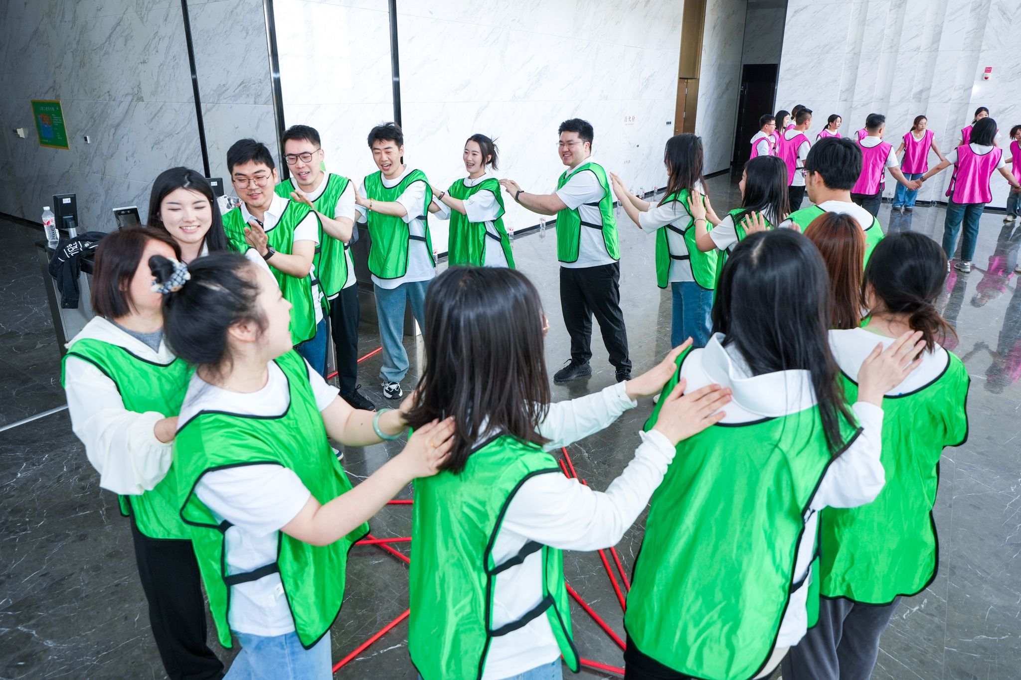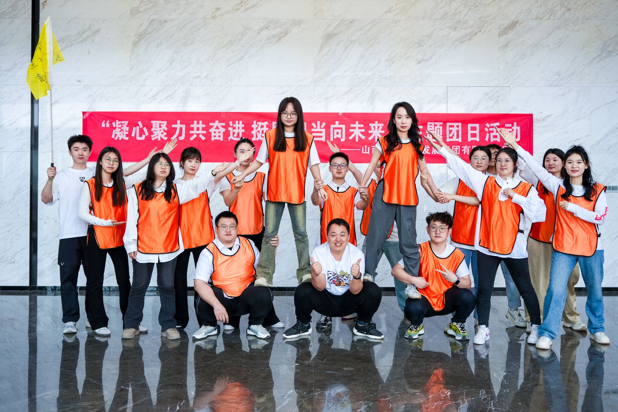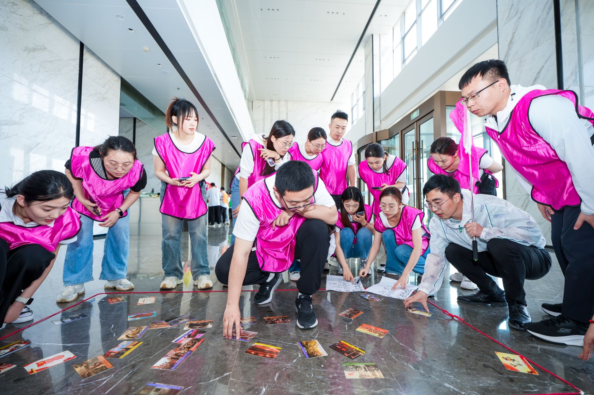 活動(dòng)中,團(tuán)隊(duì)隨機(jī)進(jìn)行分組,每組成員共同選隊(duì)長、起隊(duì)名、隊(duì)歌、隊(duì)訓(xùn)、設(shè)計(jì)團(tuán)隊(duì)logo,并以表演的形式展示團(tuán)隊(duì)建設(shè)成果,活動(dòng)在濃厚的氛圍中拉開序幕?;顒?dòng)以黨的奮斗歷史中的故事為背景,融合光輝歷程、共建家園、挑戰(zhàn)150等趣味競技游戲,在拓展運(yùn)動(dòng)中實(shí)踐歷史理論知識(shí),在團(tuán)結(jié)協(xié)作中凝聚發(fā)展奮進(jìn)合力。