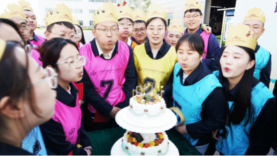 緊張而有趣的運動會結(jié)束后,公司舉行了一場溫馨而感人的集體生日會。