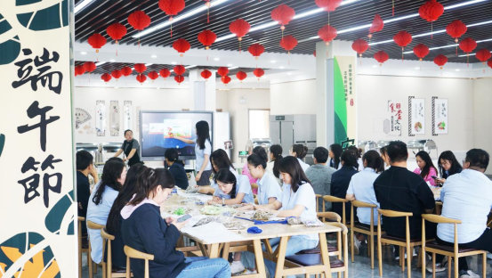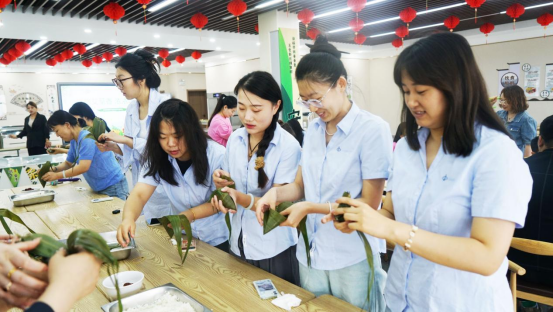 活動(dòng)包含艾草知識(shí)講座、DIY艾草錘、包粽子等活動(dòng)。在艾草知識(shí)講座中,工會(huì)專員申亞琛圖文并茂地為大家介紹了艾草的治療功效、適用范圍等知識(shí),并針對(duì)大家提出的常見(jiàn)健康問(wèn)題進(jìn)行解答,進(jìn)一步增強(qiáng)了大家的養(yǎng)生意識(shí)。在DIY艾草錘活動(dòng)中,職工們把艾絨先用棉布包裹后包緊成團(tuán),再放置支撐棍,用棉線仔細(xì)從上至下纏繞……在手工制作中,大家放慢腳步,享受DIY的樂(lè)趣。在包粽子活動(dòng)中,大家在食堂師傅的指導(dǎo)下疊粽葉、舀糯米、裹餡料、扎粽子……一張張粽葉在大家的手中翩翩起舞,一雙雙巧手不停忙碌,轉(zhuǎn)瞬間一個(gè)個(gè)形態(tài)各異的粽子便呈現(xiàn)眼前,現(xiàn)場(chǎng)歡聲笑語(yǔ)、氣氛熱烈,處處彌漫著粽葉的清香。