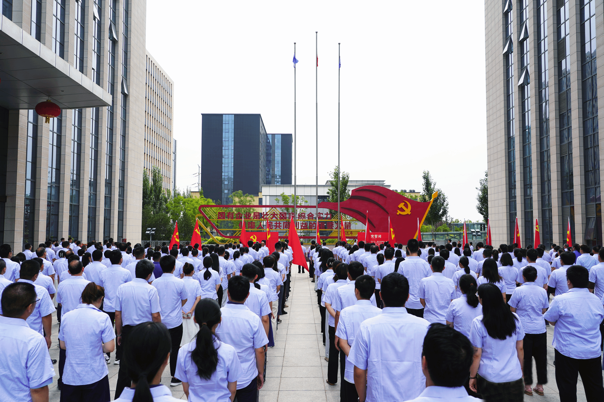 清晨的“星引擎”廣場(chǎng),一面面黨旗飄揚(yáng)在各支部隊(duì)伍前方。在雄壯的國歌聲中,五星紅旗迎著朝陽冉冉升起,全體人員莊嚴(yán)肅立,向國旗行注目禮,衷心祝福黨的103歲生日,祝愿祖國繁榮富強(qiáng)。隨后,山西建投集團(tuán)司旗、安裝集團(tuán)司旗相繼升起。