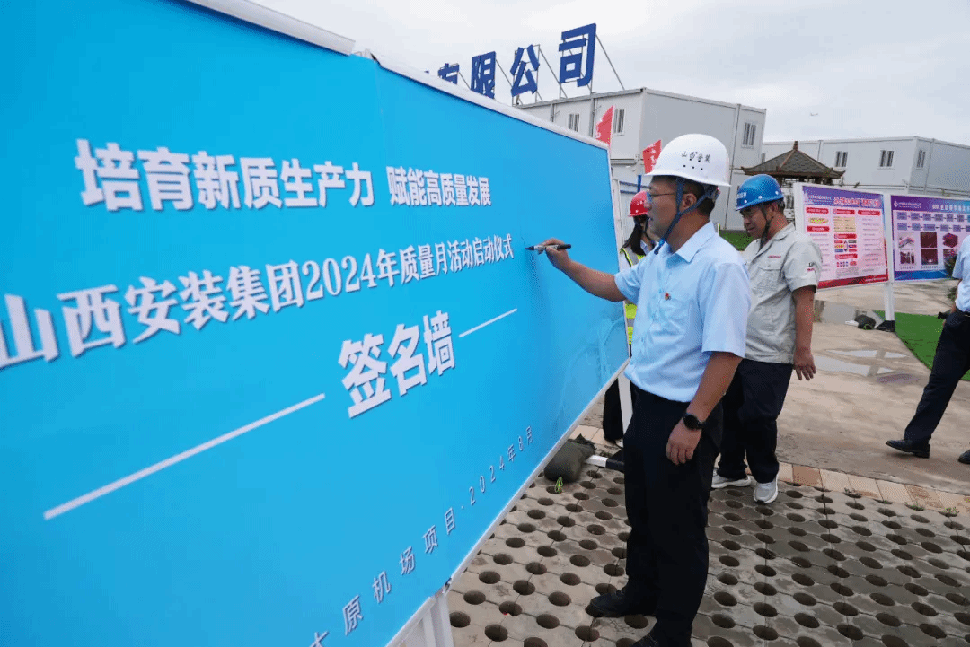 9月1日,山西建投安裝集團在太原武宿國際機場三期改擴建工程機電安裝項目部舉辦2024年“質(zhì)量月”活動啟動儀式。黨委副書記、副董事長、總經(jīng)理任銳出席并作動員講話??偣こ處熈翰?,山西省建設監(jiān)理有限公司項目總監(jiān)代表王樹林,各基層單位相關負責人、項目部及勞務人員代表等110余人參加啟動儀式。
