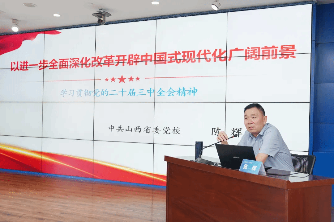 中共山西省委黨校陳輝教授“以進(jìn)一步全面深化改革開辟中國式現(xiàn)代化廣闊前景”為題,緊緊圍繞習(xí)近平總書記在黨的二十屆三中全會(huì)上的重要講話和全會(huì)《決定》,闡明了推進(jìn)中國式現(xiàn)代化的時(shí)代背景、歷史方位和使命任務(wù),闡釋了進(jìn)一步全面深化改革的指導(dǎo)思想、總目標(biāo)和重大原則、重點(diǎn)領(lǐng)域。陳教授的講座語言生動(dòng)、內(nèi)容豐富,充分運(yùn)用典型案例和翔實(shí)數(shù)據(jù),幫助學(xué)員不斷加深對(duì)全會(huì)精神的理解。