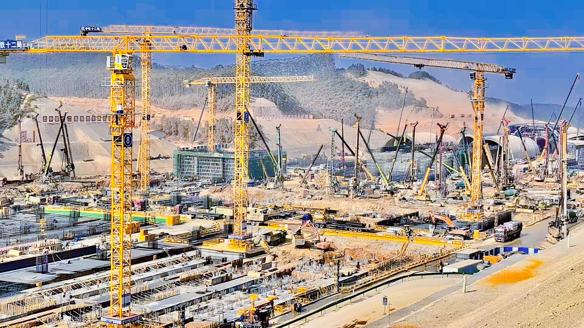 在廣州至湛江高速鐵路珠三角樞紐機場站前工程項目現(xiàn)場,一臺臺晉塔塔式起重機正有條不紊地吊裝,高效配合項目建設各項施工需求。