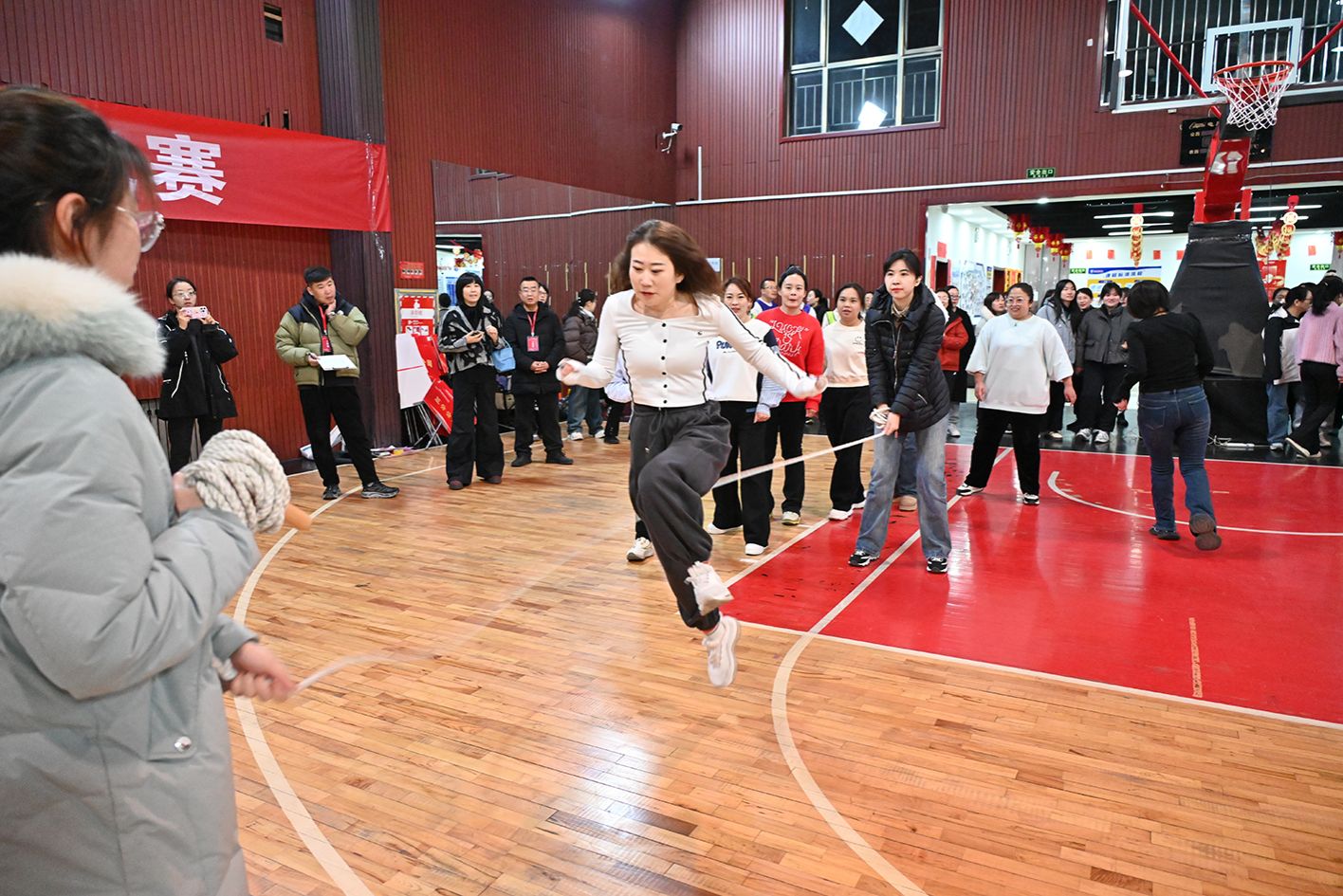 比賽分為個(gè)人賽和團(tuán)體賽,既考驗(yàn)了個(gè)人技能,又對(duì)團(tuán)隊(duì)協(xié)作提出較高要求,充分展現(xiàn)了女職工在力量、速度與創(chuàng)意上的多樣才華。個(gè)人賽為30秒單搖跳,選手們身姿輕盈,跳繩在她們手中劃出一道道絢麗的弧線。團(tuán)體賽分為10人長(zhǎng)繩“8”字跳和集體跳,比賽中,各隊(duì)成員默契配合,充分展現(xiàn)了團(tuán)隊(duì)協(xié)作力。場(chǎng)上場(chǎng)下歡聲笑語(yǔ),互相鼓勁,大家享受著比賽帶來(lái)的樂(lè)趣。
