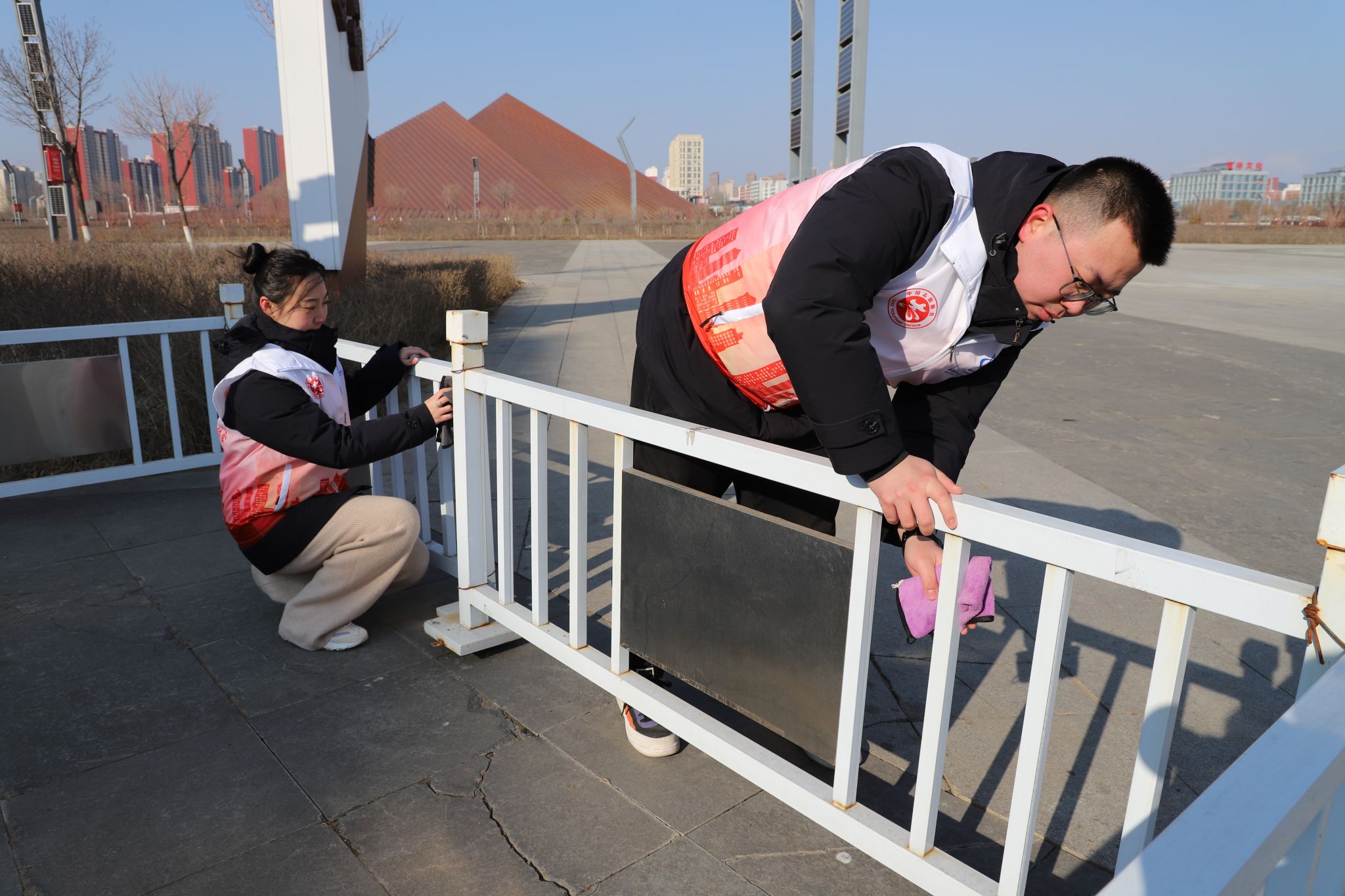 啟動(dòng)儀式后,志愿者們立即開(kāi)展學(xué)雷鋒服務(wù)活動(dòng)。他們攜帶清潔布、清潔劑等工具,認(rèn)真擦拭宣傳欄、公交站牌、道路欄桿,給廣大市民營(yíng)造健康、整潔、舒適的工作生活環(huán)境。除了清潔公共設(shè)施,志愿者們積極行動(dòng),將停放在路邊、人行道上的共享單車(chē)扶起,按照指定區(qū)域進(jìn)行有序擺放。在大家共同努力下,街道周邊的共享單車(chē)排列整齊,方便了市民日常出行,為城市街道增添了一抹七建志愿紅。