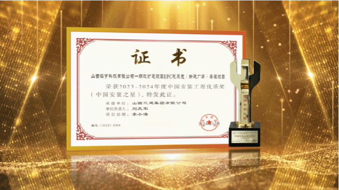 近日,山西建投三建集團(tuán)收到“中國安裝工程優(yōu)質(zhì)獎(jiǎng)”(中國安裝之星)獎(jiǎng)杯,承建的山西崧宇科技有限公司一期改擴(kuò)建項(xiàng)目EPC總承包(新建廠房)安裝項(xiàng)目,在2023-2024年度中國安裝工程優(yōu)質(zhì)獎(jiǎng)評選中脫穎而出,榮獲“中國安裝工程優(yōu)質(zhì)獎(jiǎng)”(中國安裝之星)。